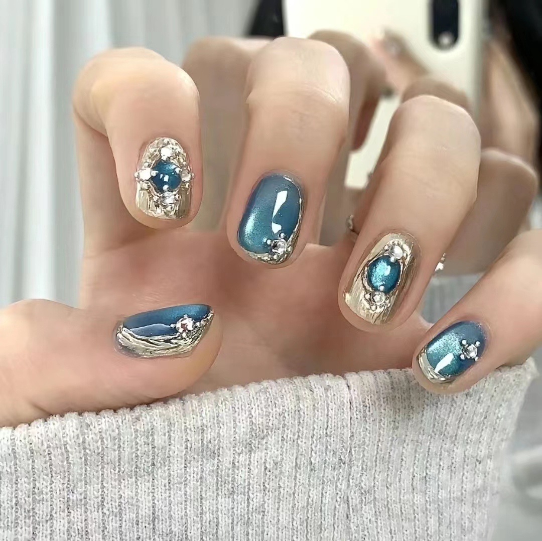 【奇迹湖蓝】蔚蓝岛屿穿戴甲美甲甲片蓝色猫眼布契拉提