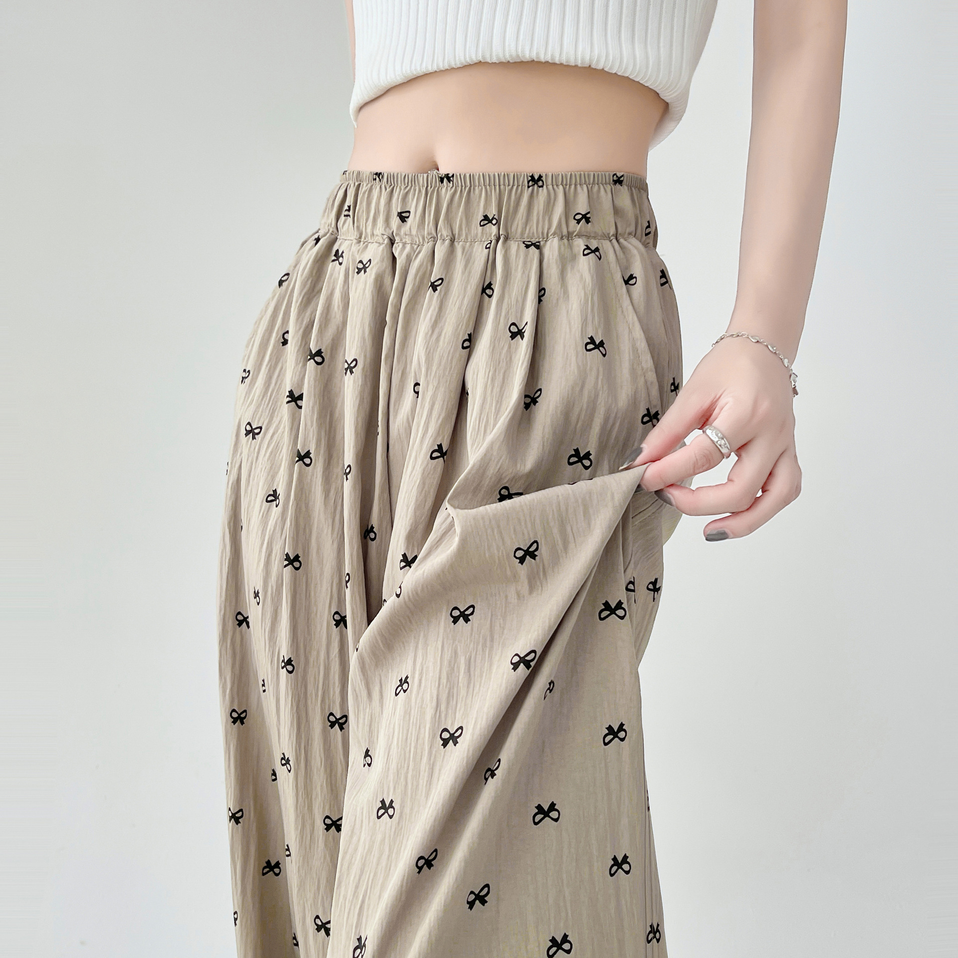 蝴蝶结冰丝棉麻裤子女夏季薄款阔腿裤高腰宽松直筒垂感休闲山本裤
