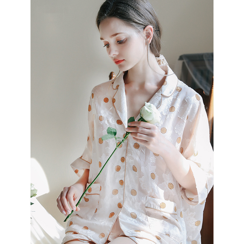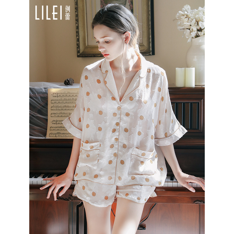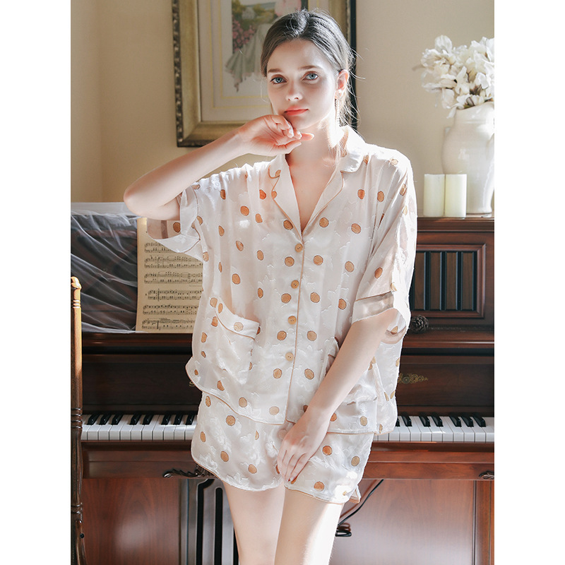 睡衣女夏季短袖套装两件套冰丝复古宽松提花流苏春夏家居服可外穿