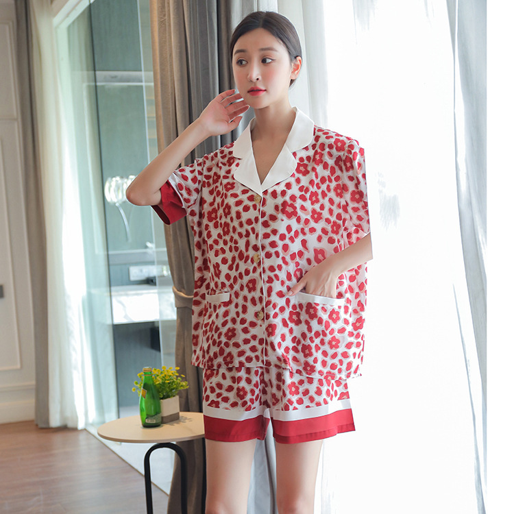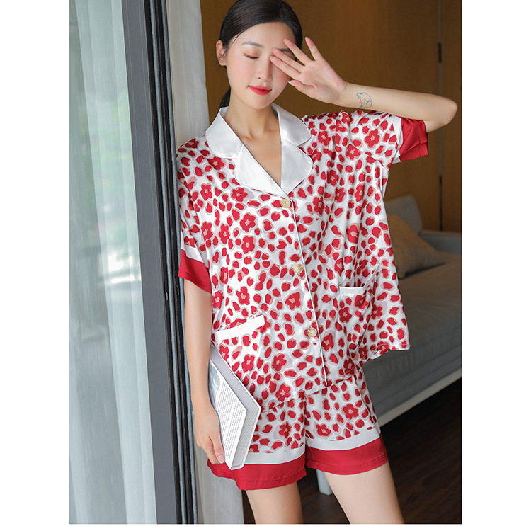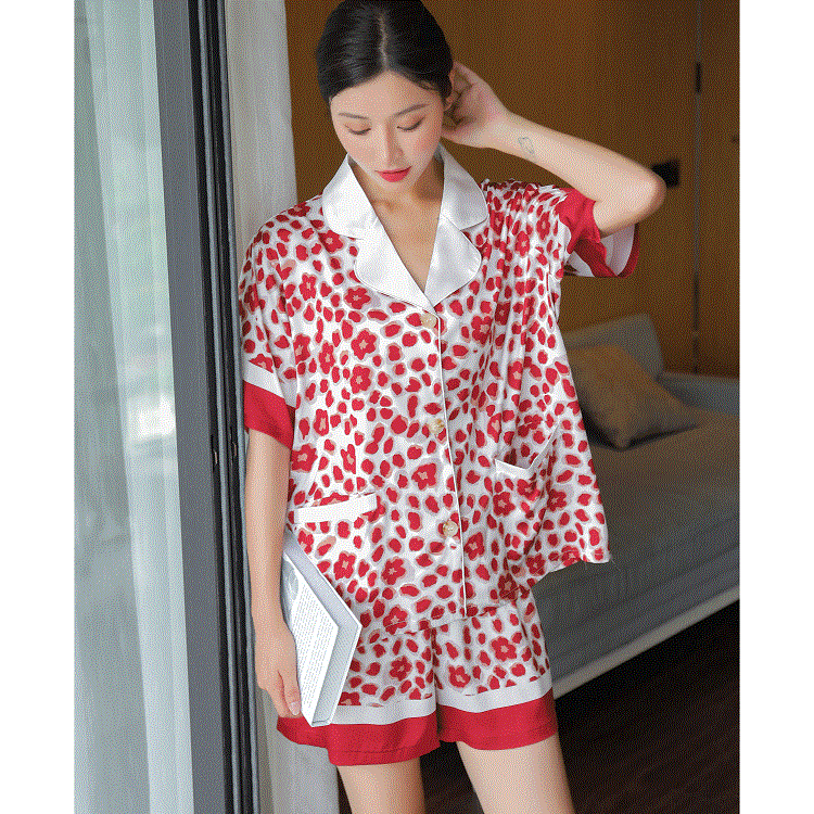 冰丝睡衣高级感女夏季可出门短袖短裤两件套装丝绸印花家居服薄款
