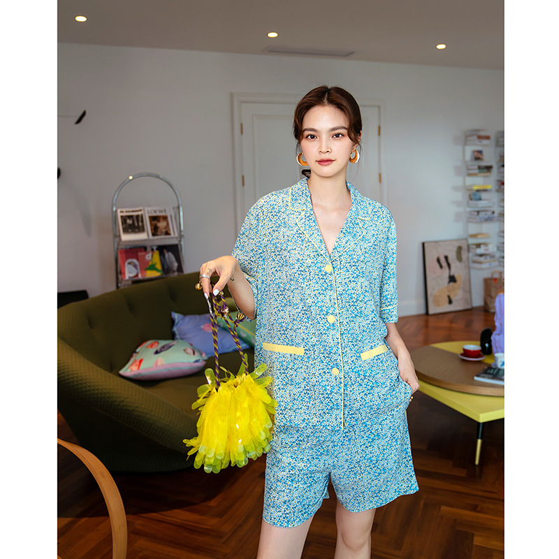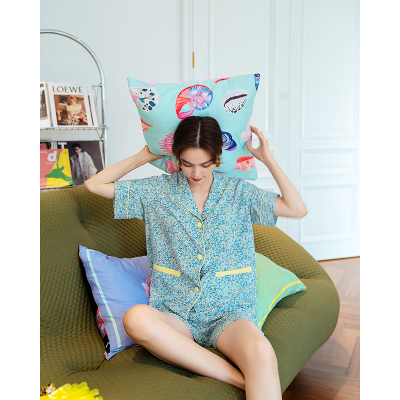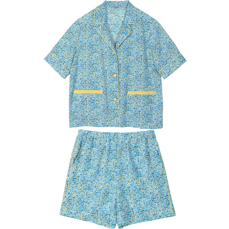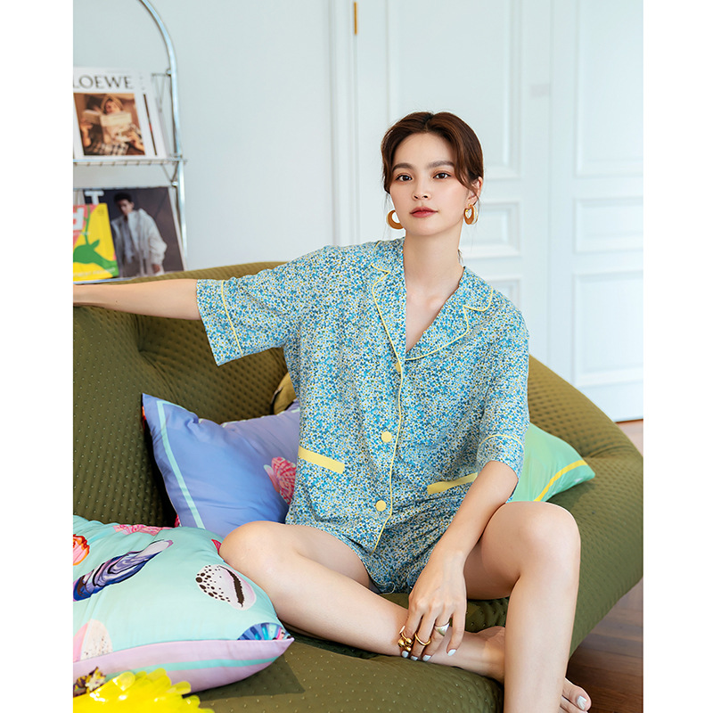蓝色太阳新款冰丝睡衣女夏季薄款短袖短裤两件套装家居服外穿