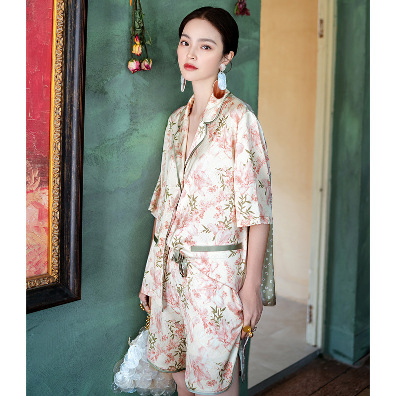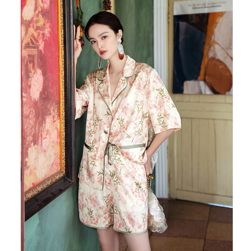 复古花卉高级感冰丝短袖睡衣女新款夏季套装家居服网红爆款