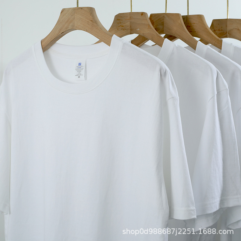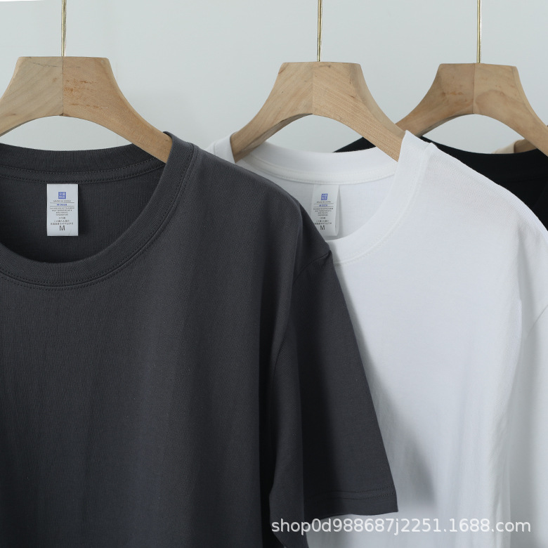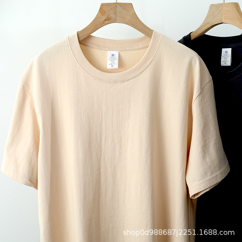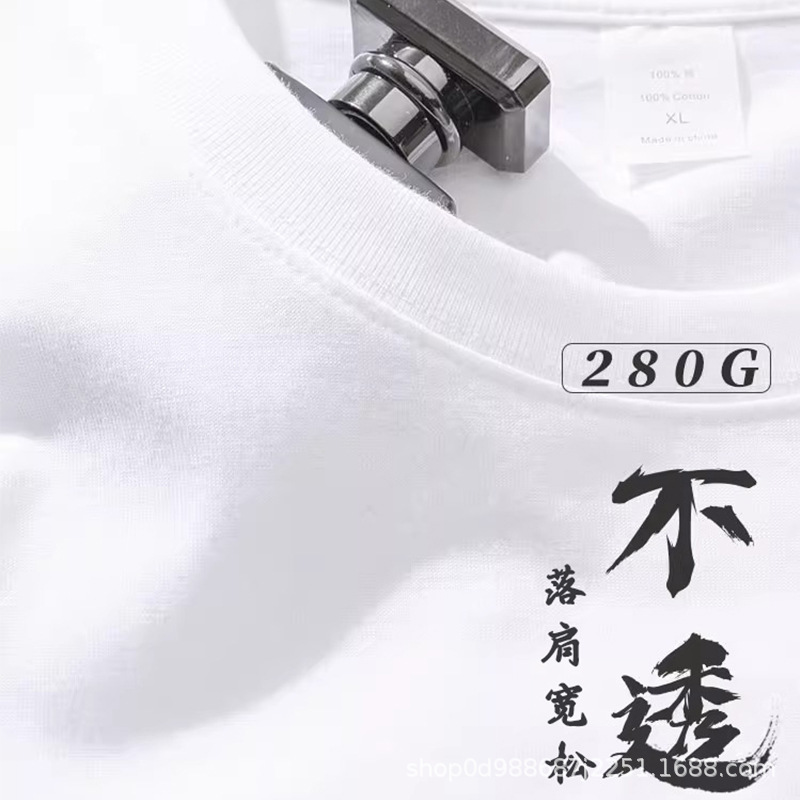 重磅280g新疆长绒棉重磅纯棉T恤纯色落肩短袖体恤夏季打底圆领衫