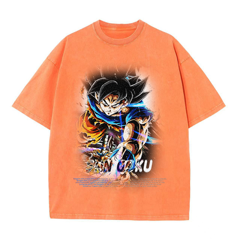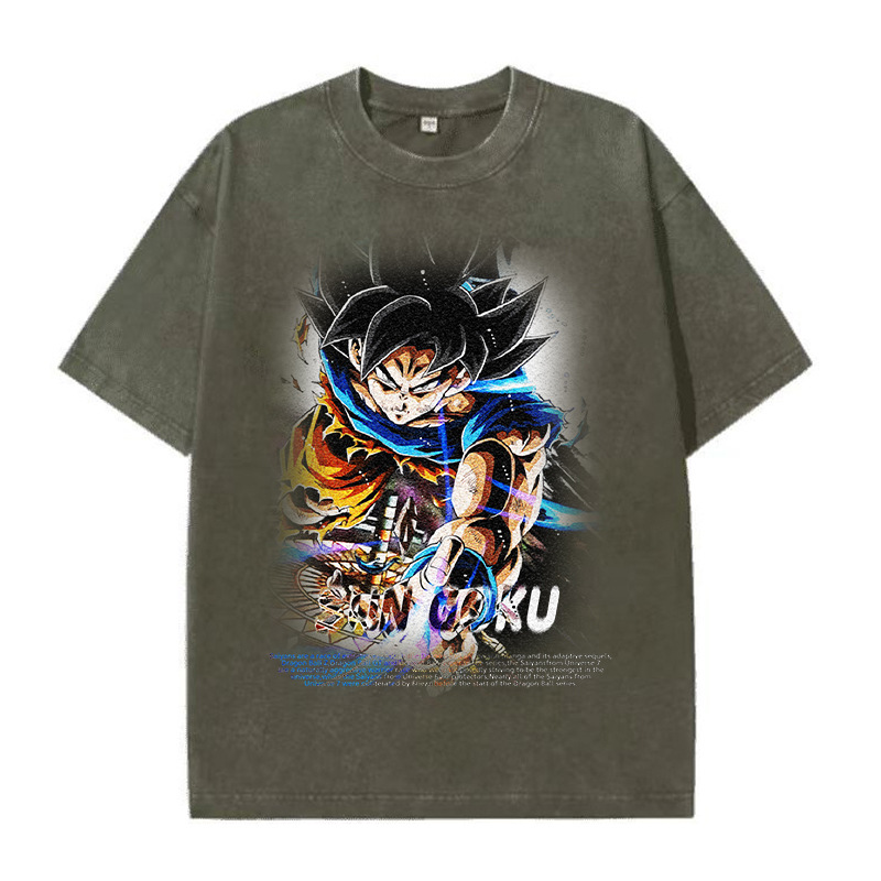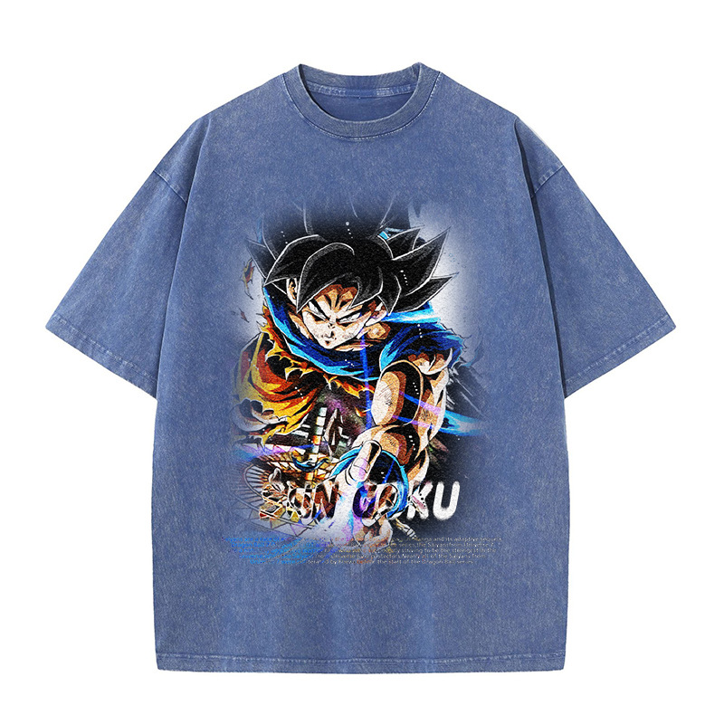 DB Anime Graphic Design纯棉做旧短袖T恤潮牌休闲宽松龙珠二次元