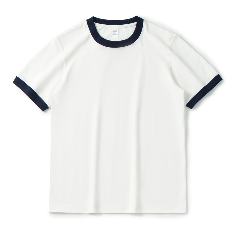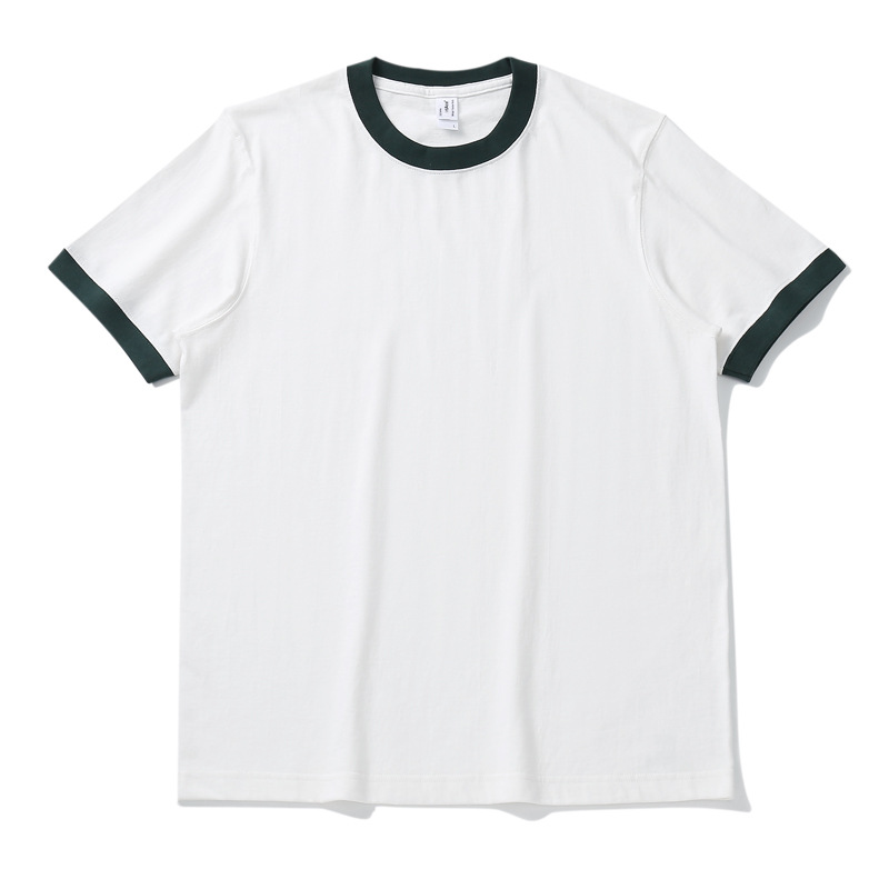 270g国潮重磅复古全棉撞色外贸百搭体恤潮牌情侣装圆领T恤男短袖