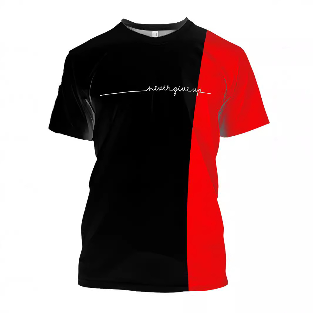 150g网布圆领T恤(欧洲标码)黑红撞色永不放弃T恤