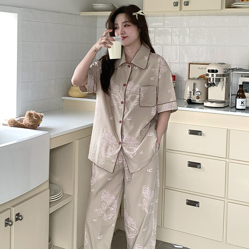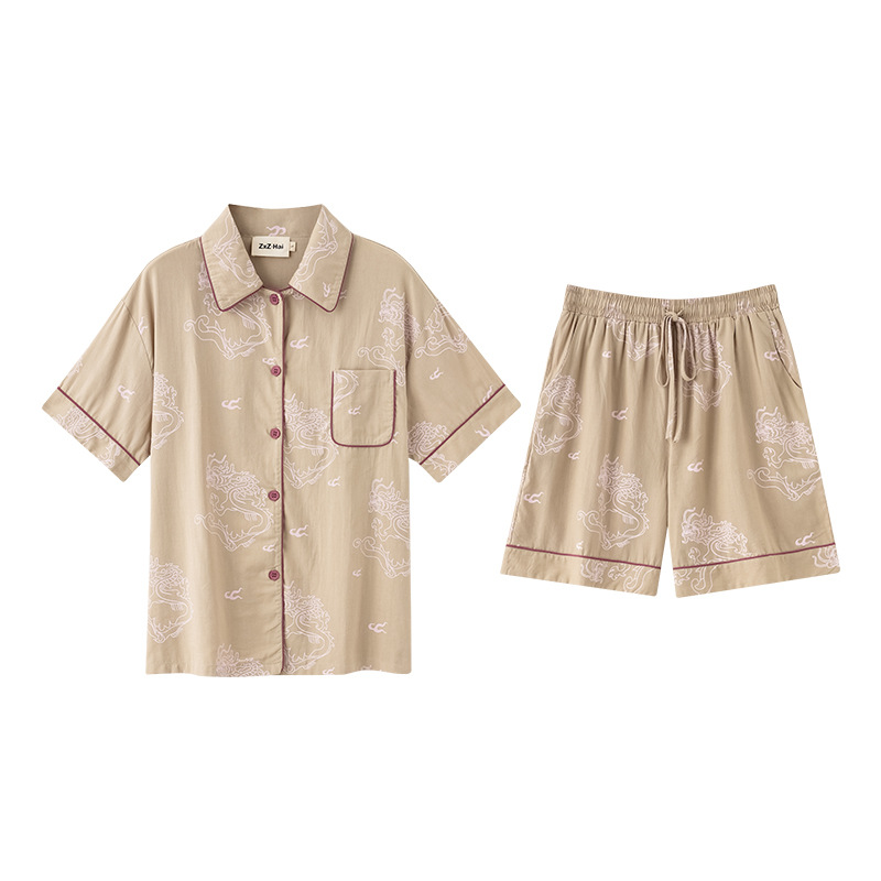 春夏季新款ins国风新中式短袖纯棉睡衣三件套薄款时尚开衫家居服