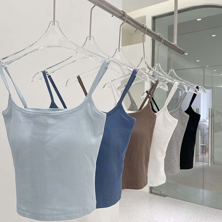 春季纯色罗纹棉质固定杯带胸垫外穿背心女收副乳内搭女士吊带