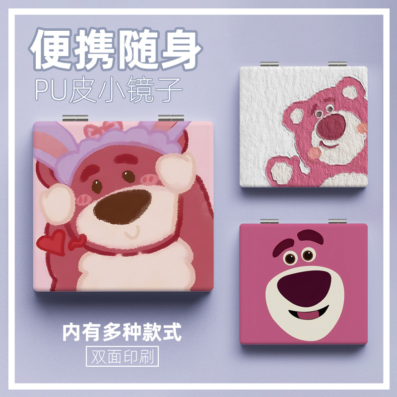 卡通草莓熊便携折叠式化妆镜女简约学生宿舍补妆小镜子随身随身带