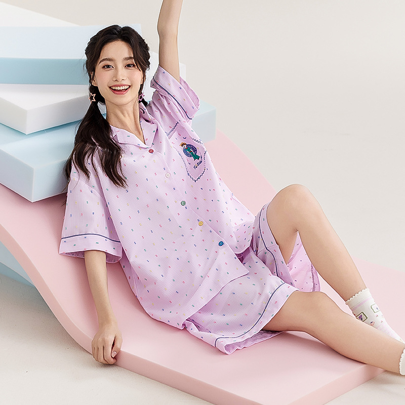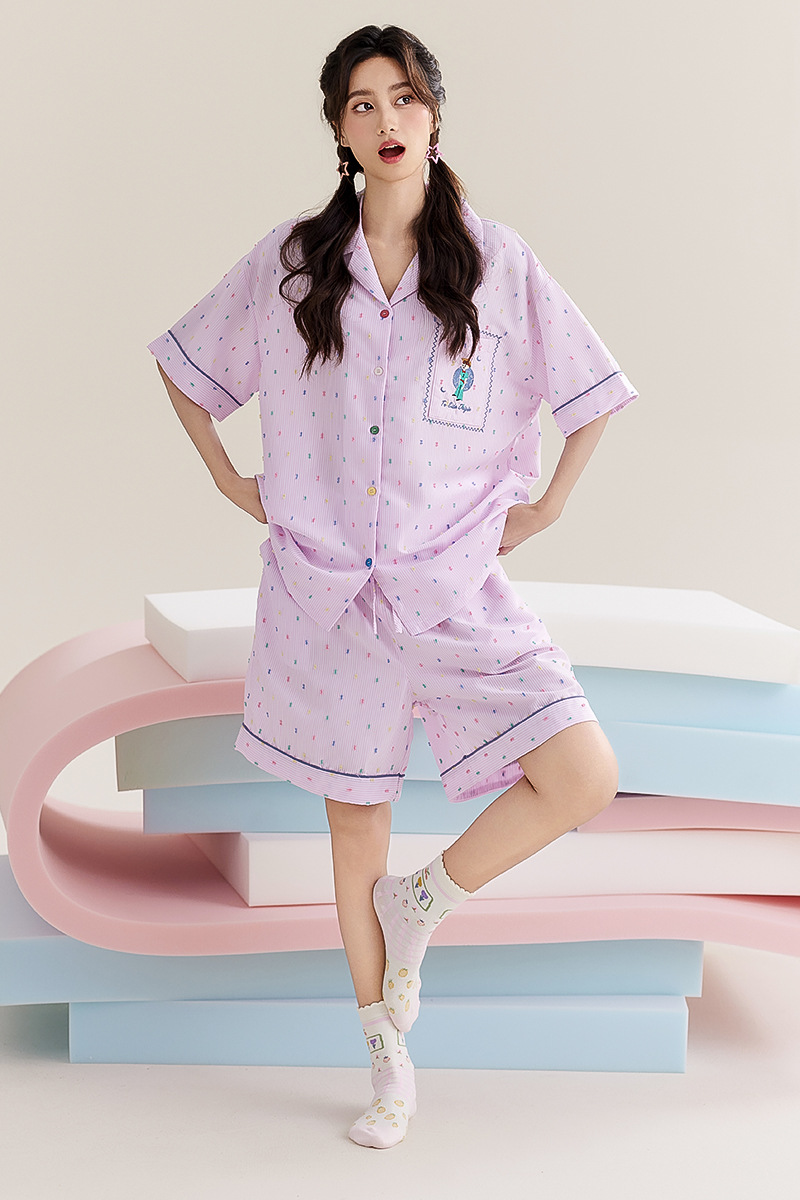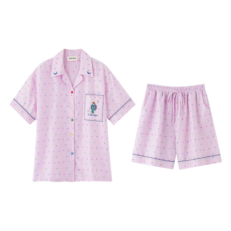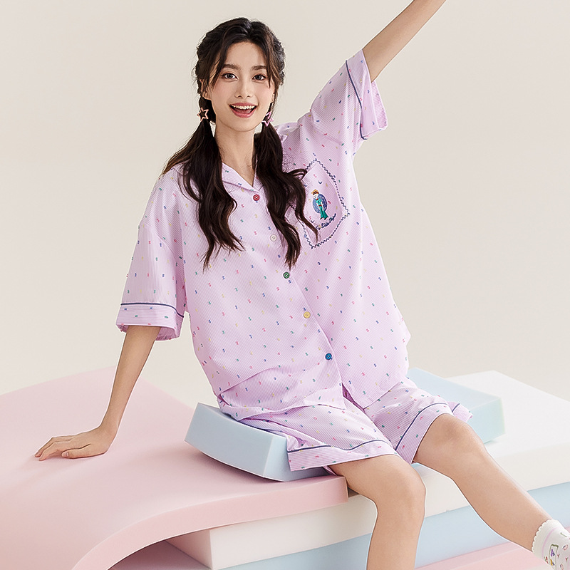 新款涤纶可爱短袖睡衣套装粉色小王子休闲时尚少女清新家居服