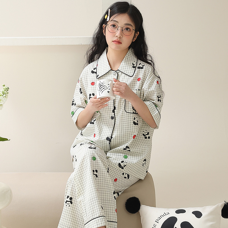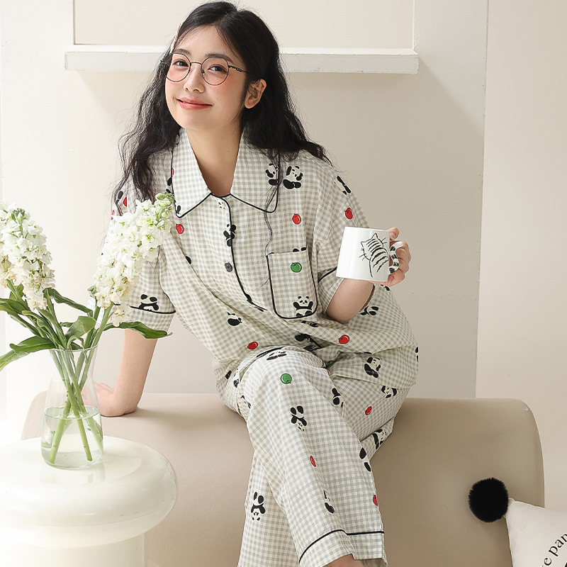 (短袖长裤)ZXZ948 熊猫苹果纯棉睡衣(薄款)