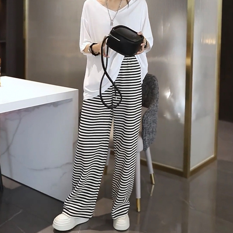 黑白条纹阔腿裤女夏季新款慵懒风休闲拖地裤子宽松垂感直筒裤