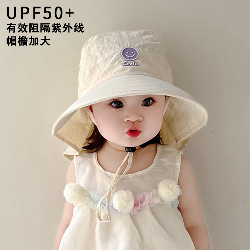 儿童帽子夏季薄款透气网眼大帽檐防晒披肩帽男女宝宝遮阳太阳帽潮
