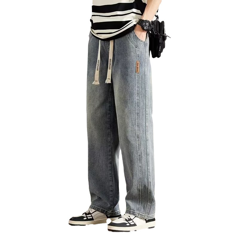衫少服饰牛仔裤男士夏季薄款冰丝美式高街宽松直筒休闲阔腿长裤子