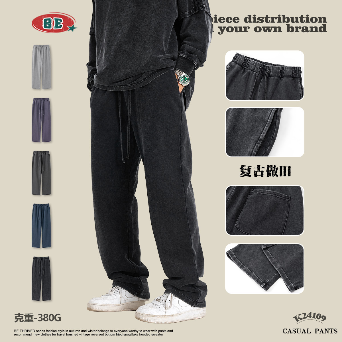 BE男装|秋冬美式休闲潮牌直筒裤运动长裤男复古宽松重磅卫裤