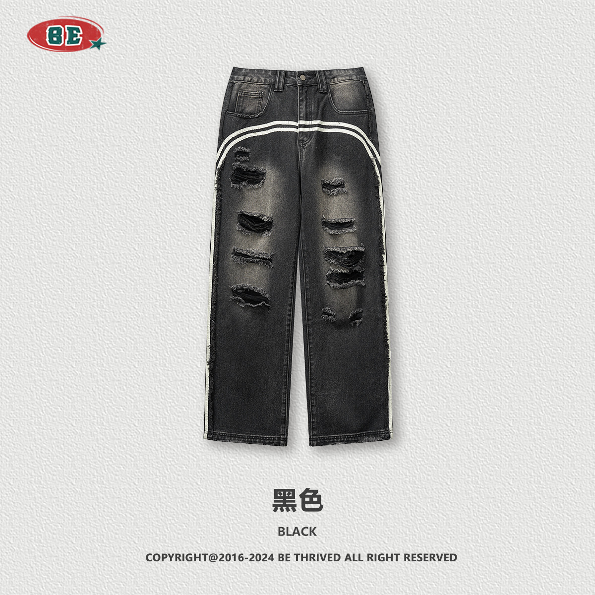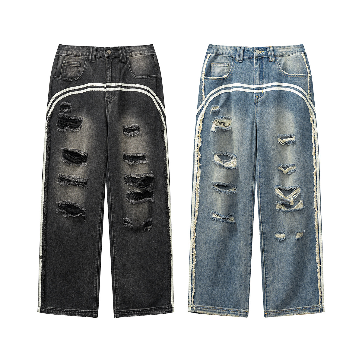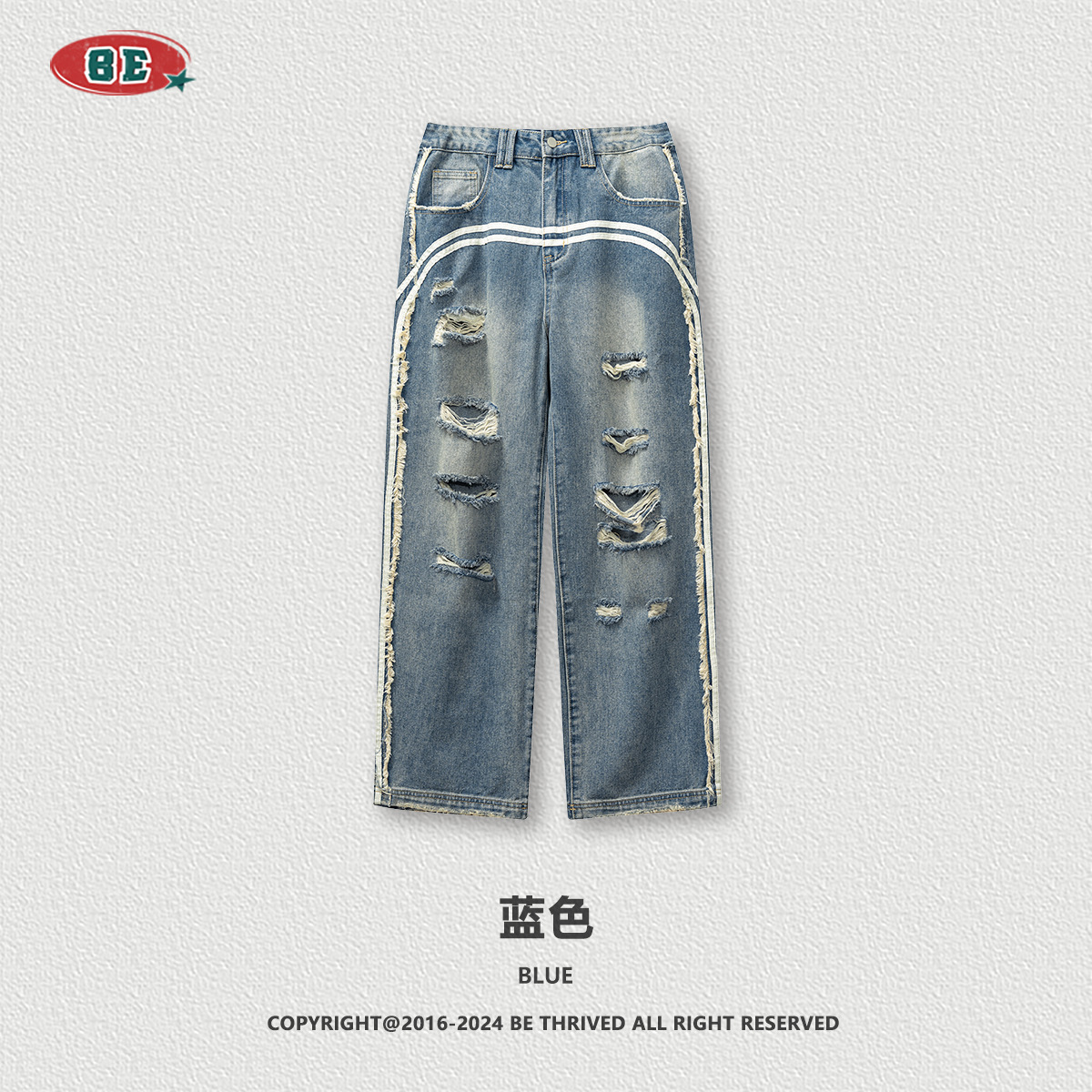 BE男装四季款美式复古潮流高街做旧痞帅宽松阔腿拖地牛仔裤男