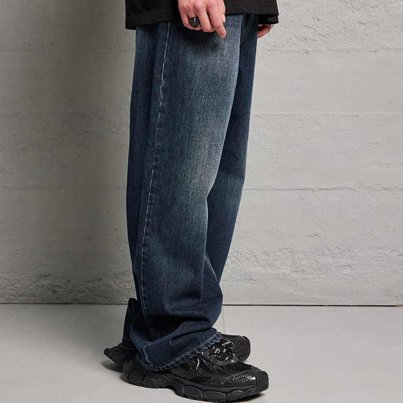 原色牛仔裤男宽松直筒阔腿垂感潮流裤子新款秋季百搭休闲