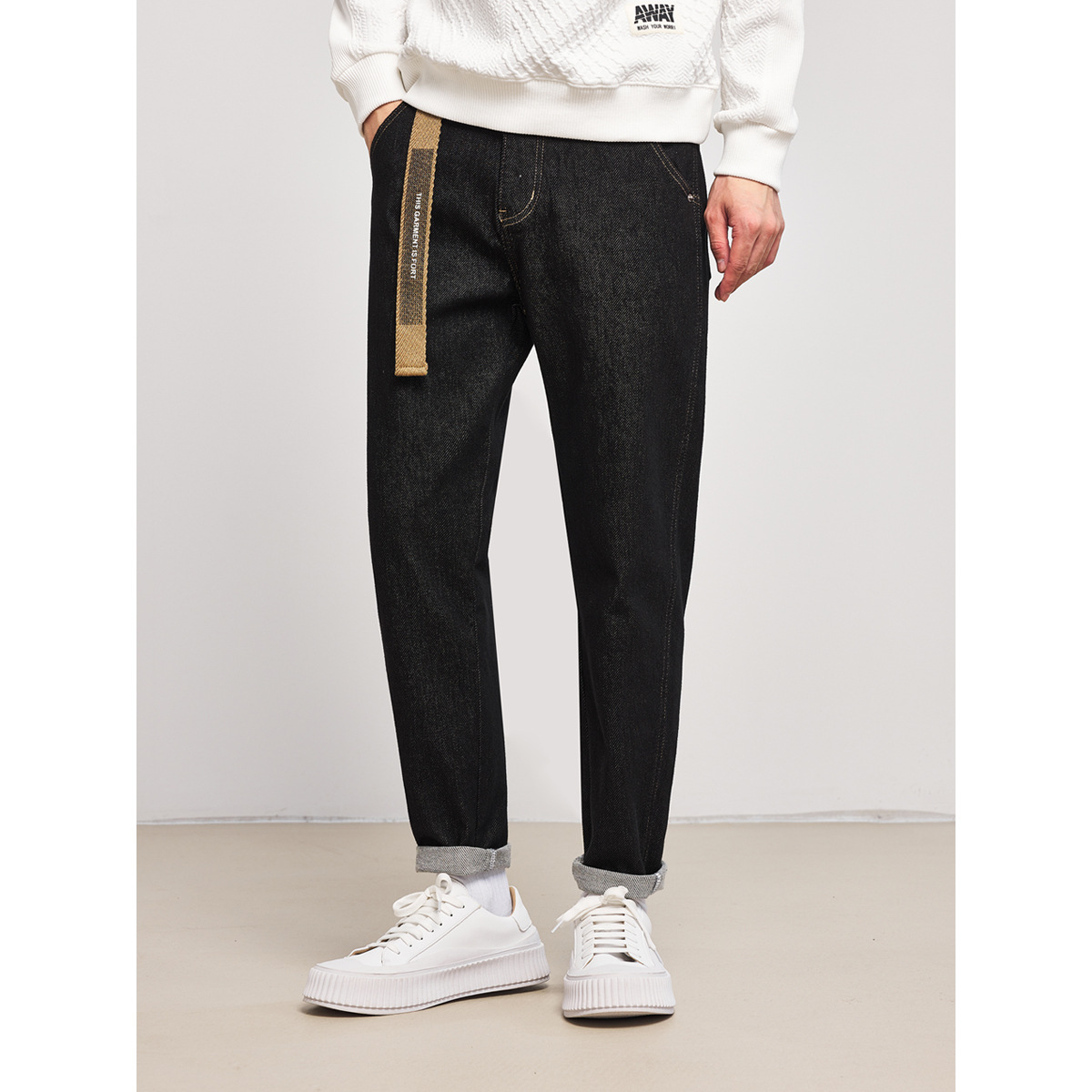 墨麦客简约中腰锥形牛仔裤男秋季新款男士色织牛仔裤子97110