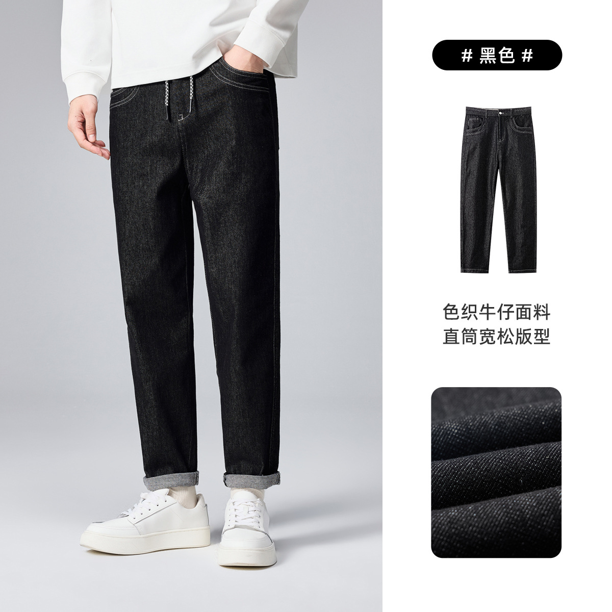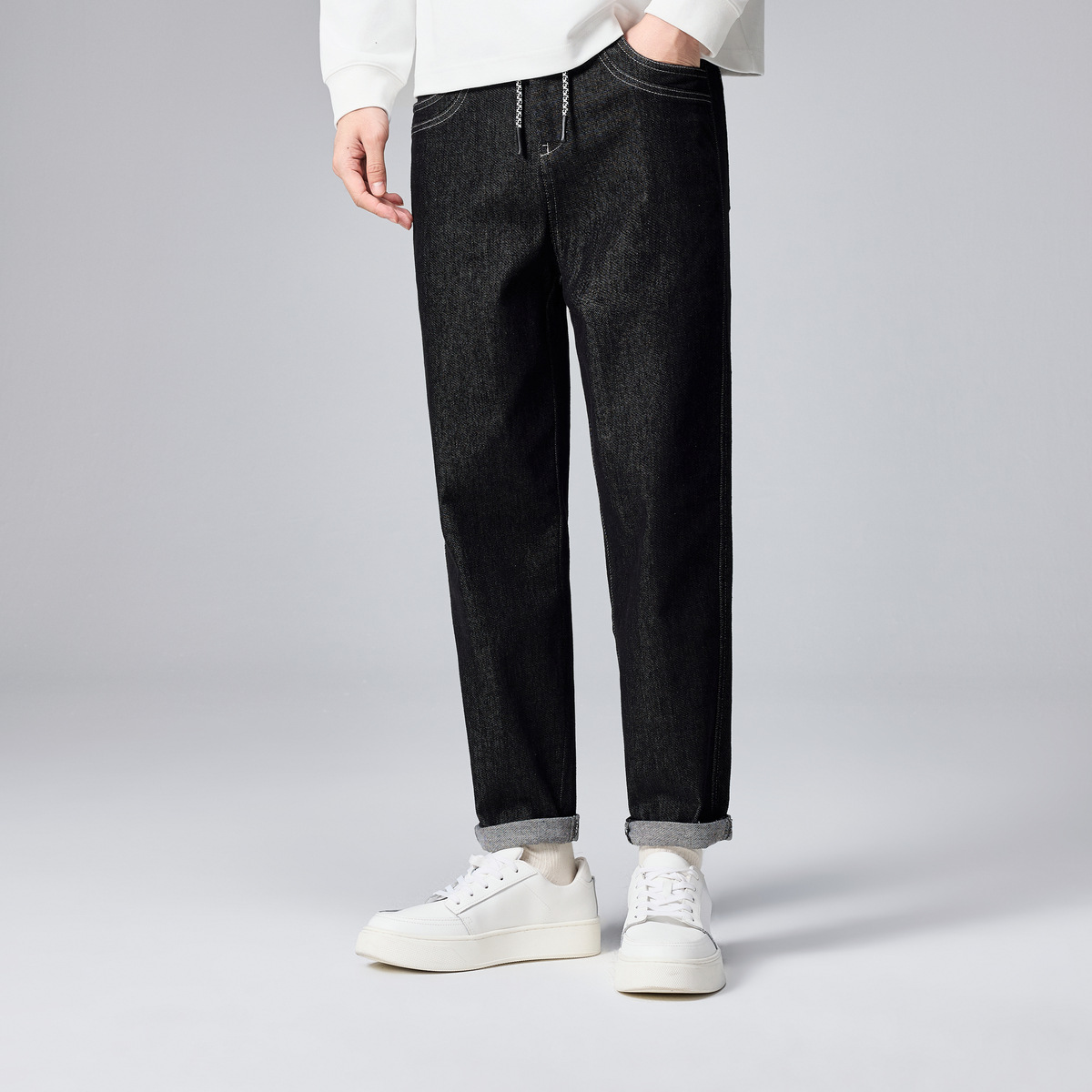 墨麦客棉混纺色织牛仔裤男秋新款松紧腰明辑线男士裤子97245