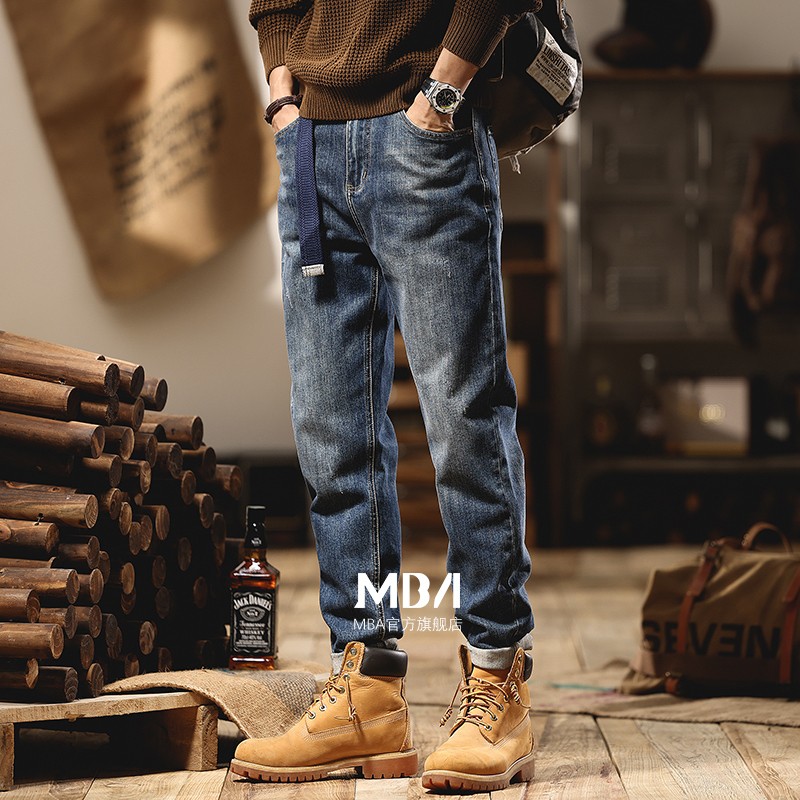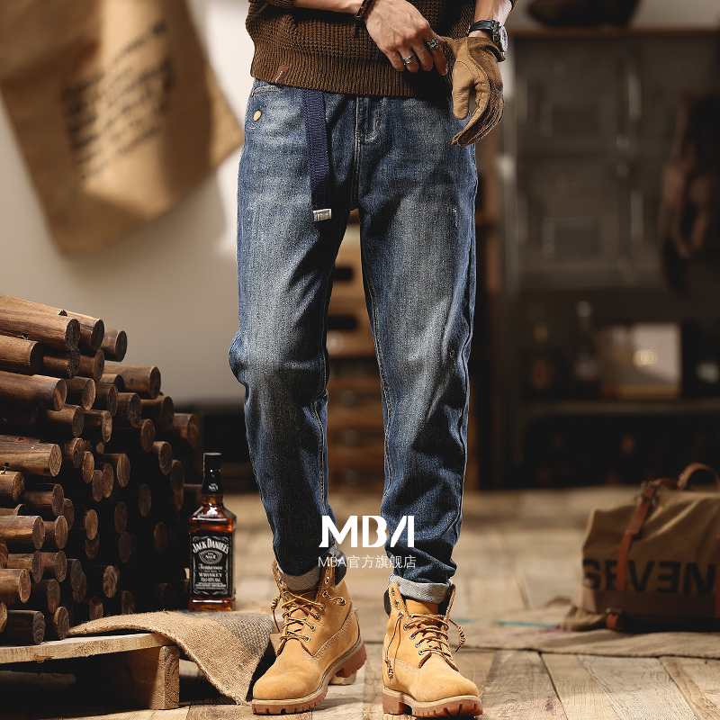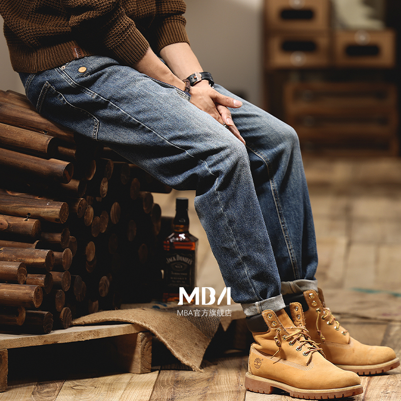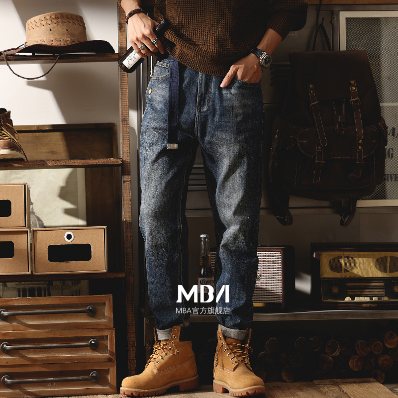MBA潮牌 水洗直筒牛仔裤男款新款男裤春秋款宽松男士裤子