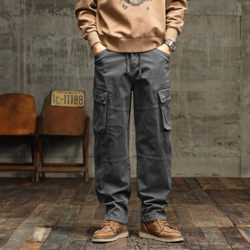 男士加厚工装裤宽松时尚百搭保暖多口袋休闲长裤美式复古直筒裤子