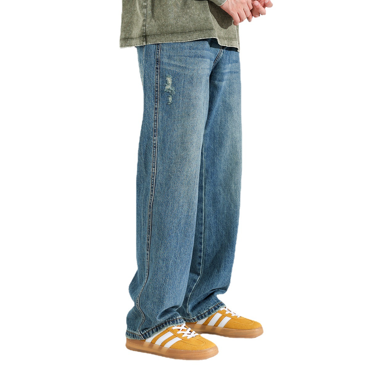 Ceecuz美式cleanfit蓝色直筒牛仔裤男春夏复古水洗宽松休闲长裤子