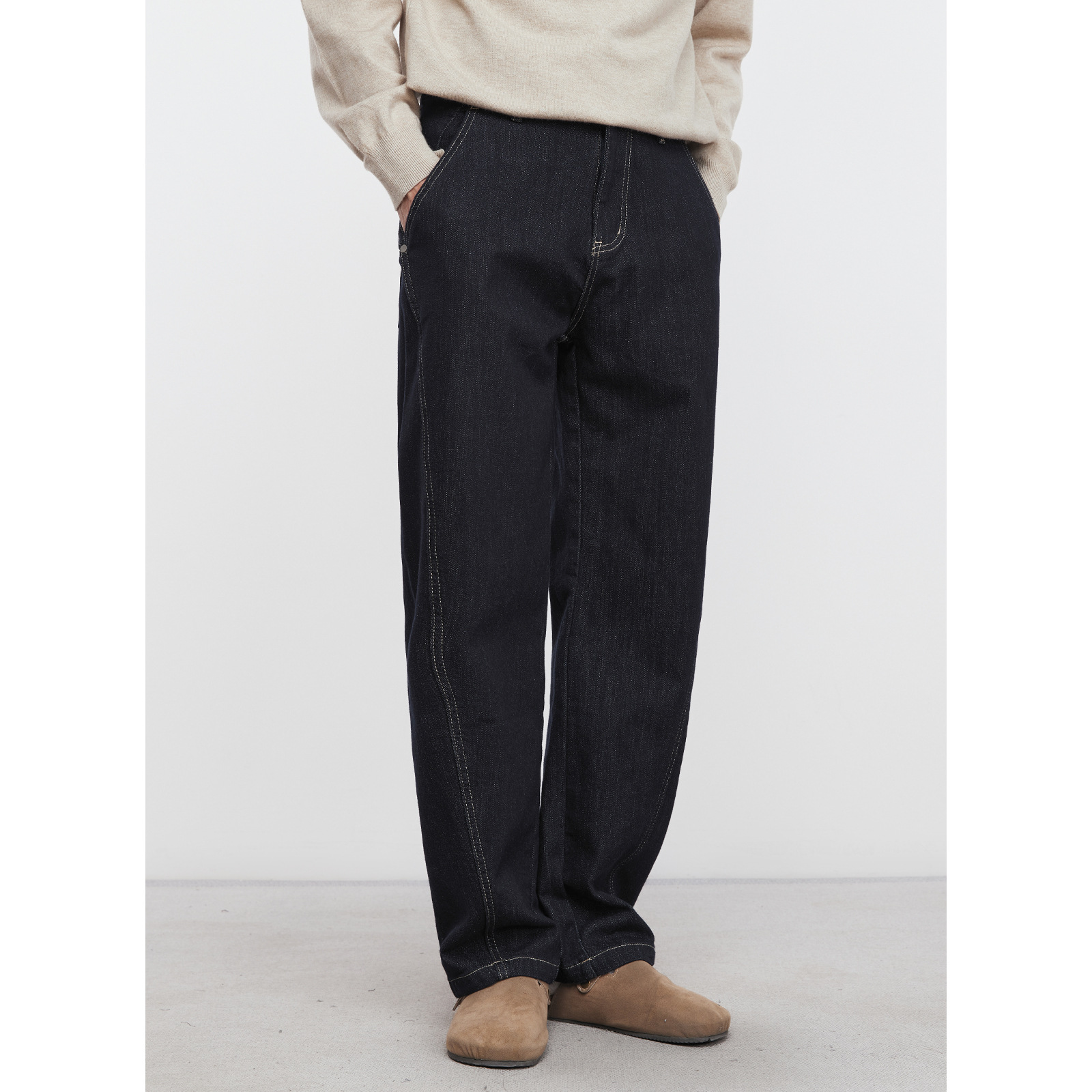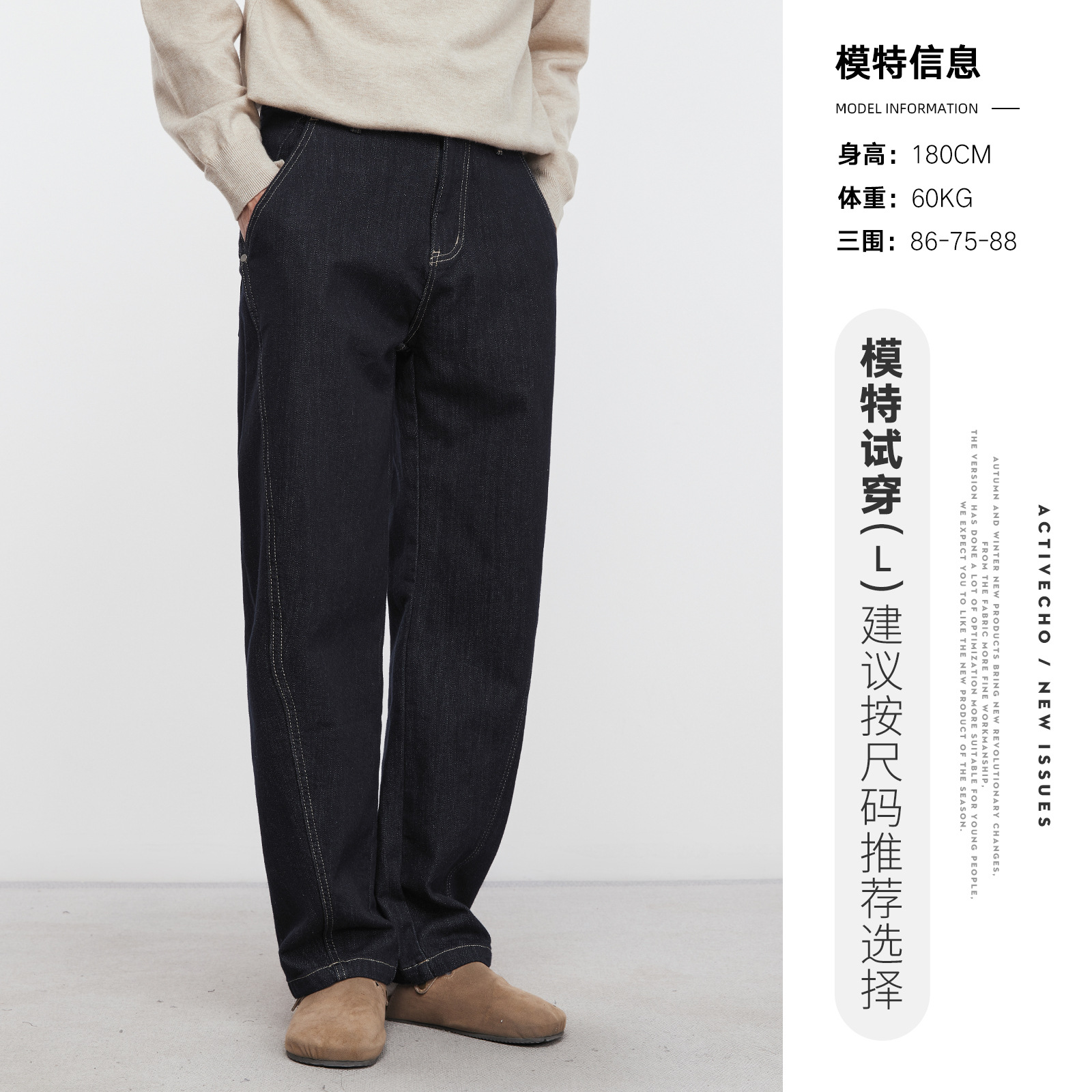 亦止加绒牛仔裤男士秋冬季新款百搭宽松弯刀裤直筒休闲长裤子