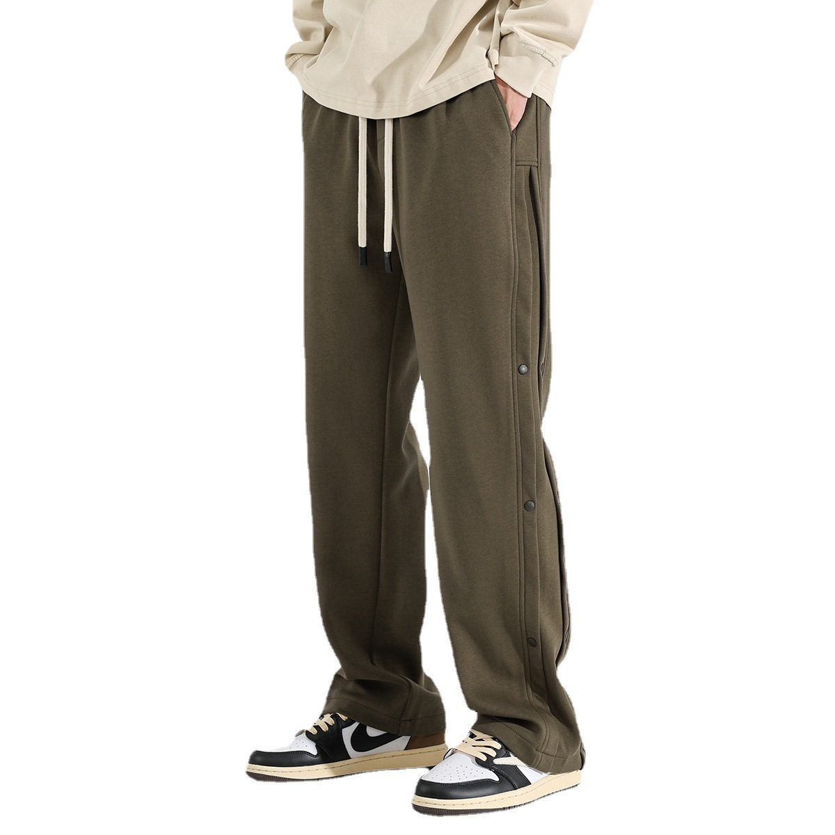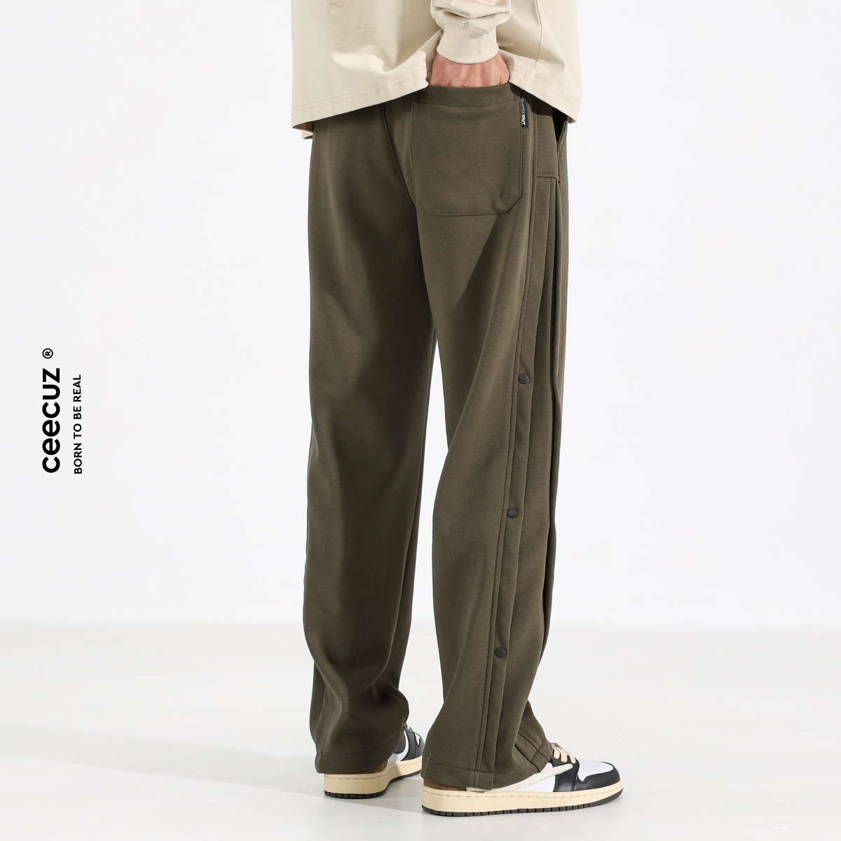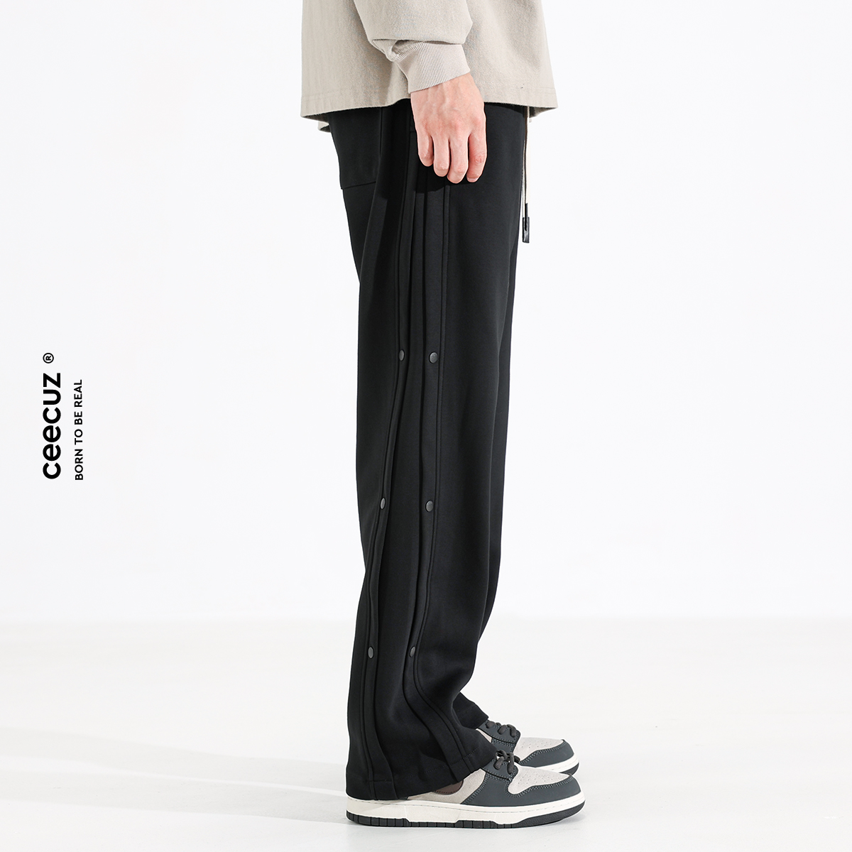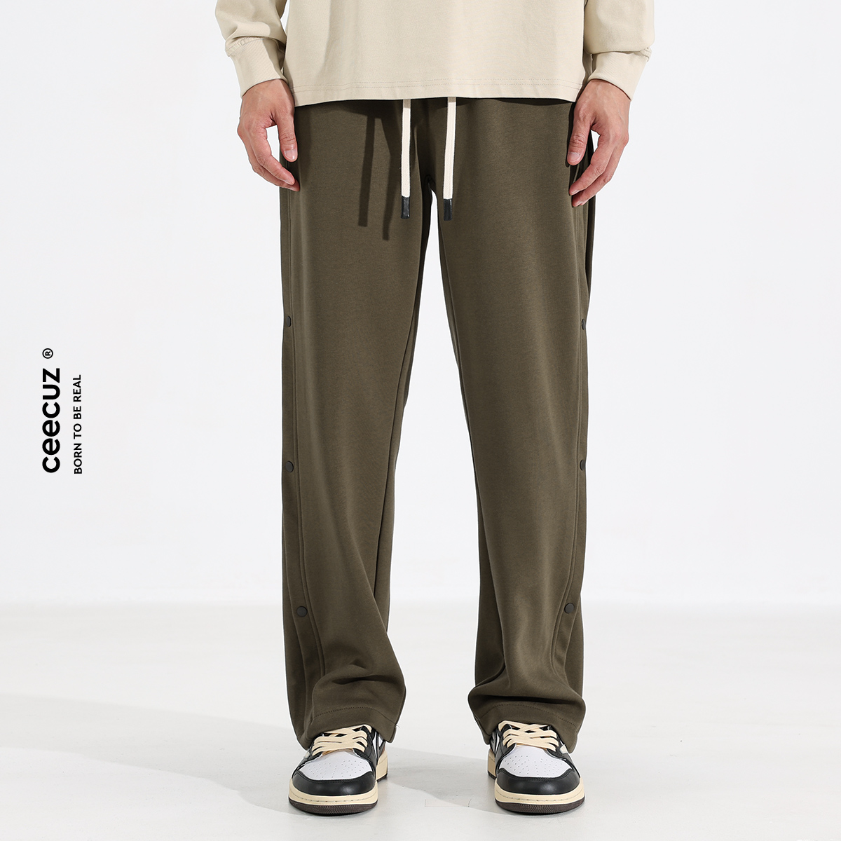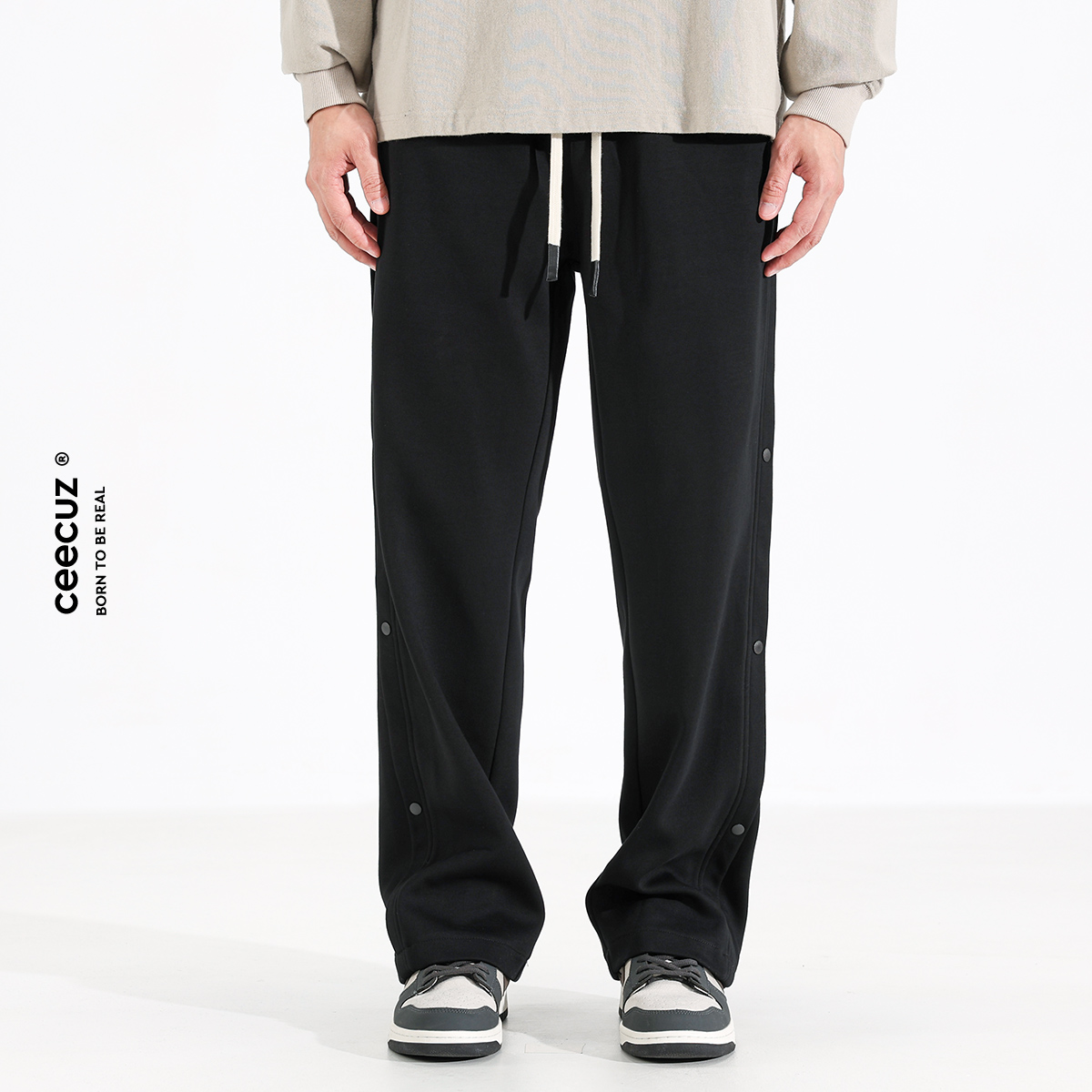 Ceecuz重磅垂感春夏新款宽松直筒运动卫裤男款美式潮牌排扣休闲裤