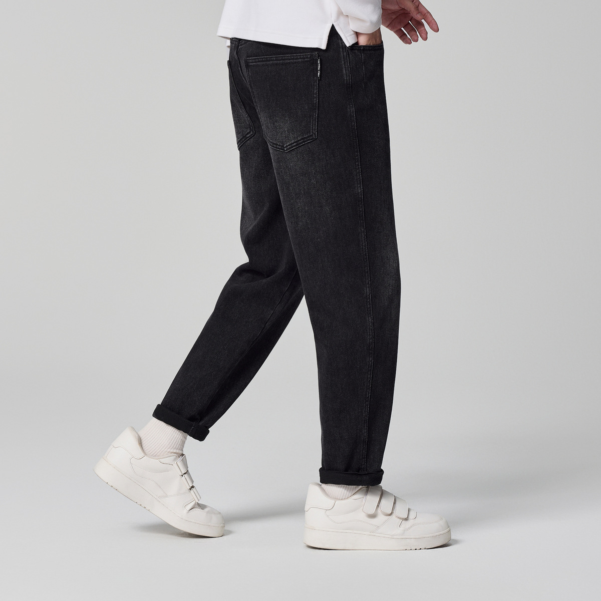 墨麦客男装锥形裤加绒牛仔裤男冬新款小直筒男士长裤子97270