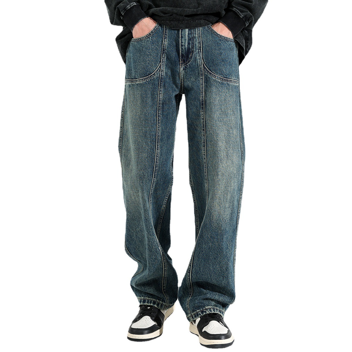 Ceecuz春秋新款垂感宽松直筒牛仔裤男美式潮流阔腿拖地休闲长裤子