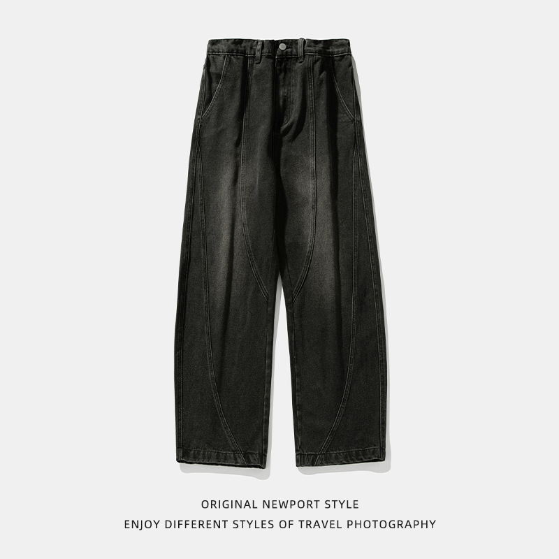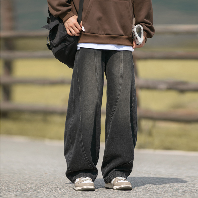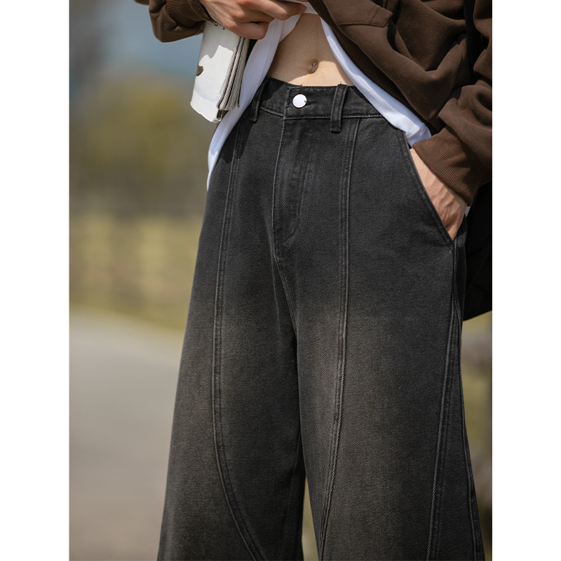 做旧渐变水洗牛仔裤男秋冬款高街复古弯刀裤宽松百搭阔腿休闲长裤