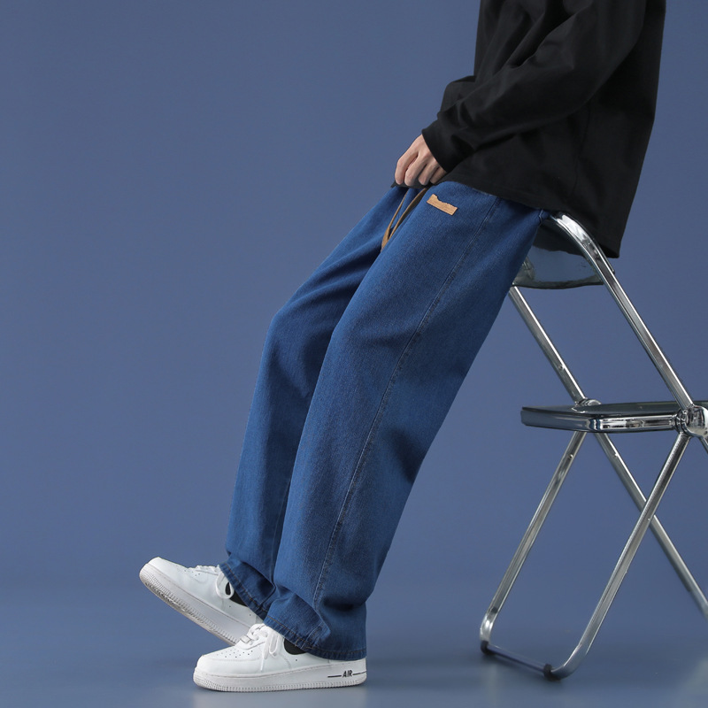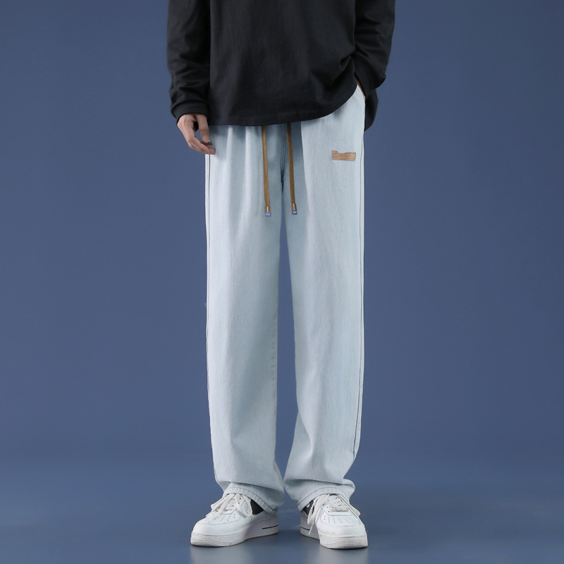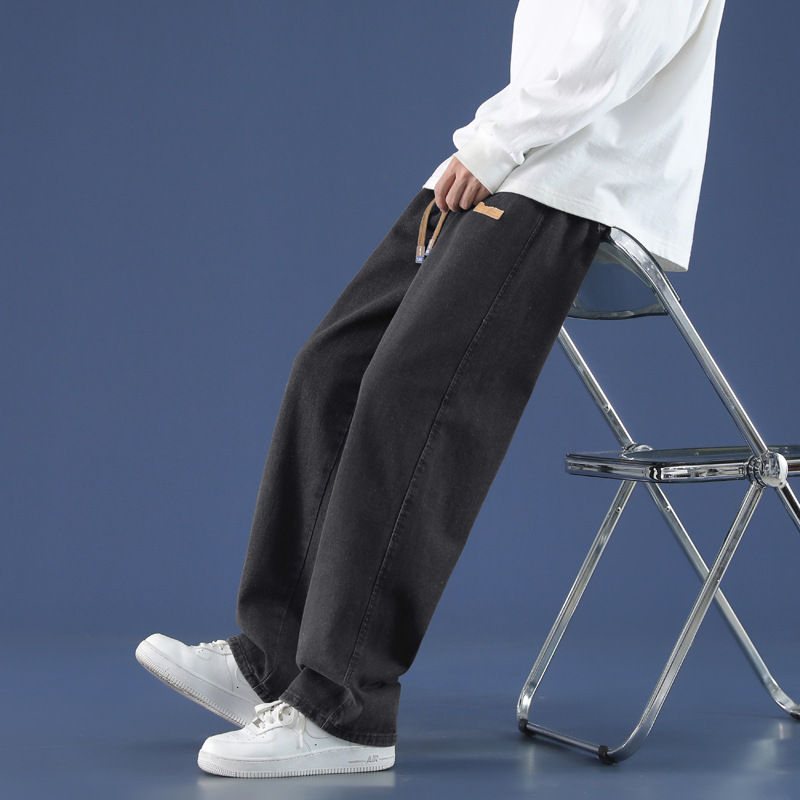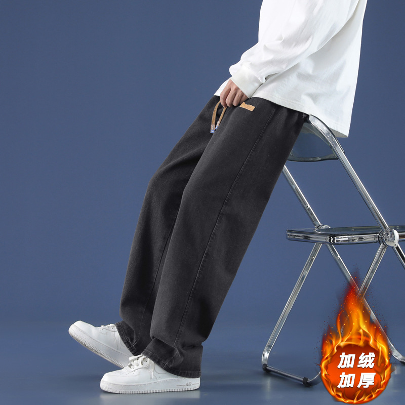 新款牛仔裤男秋冬季时尚宽松直筒长裤男生阔腿工装休闲裤子