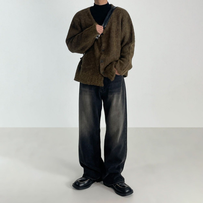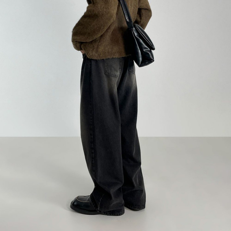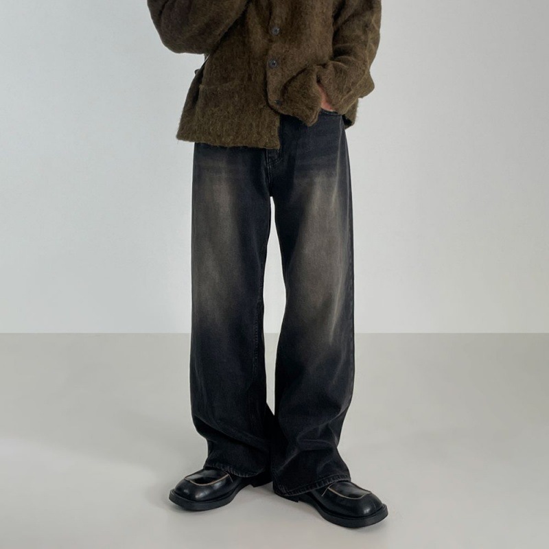 MYQ复古水洗垂感加厚牛仔裤男秋冬季新款韩版宽松阔腿直筒裤子
