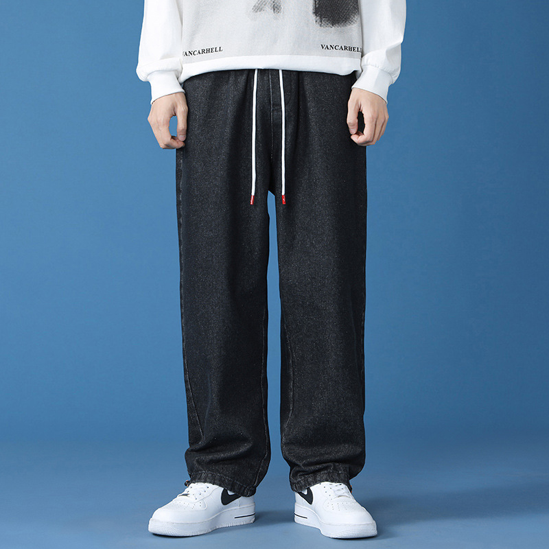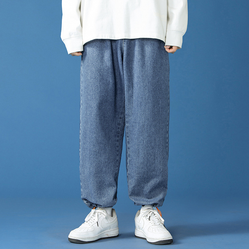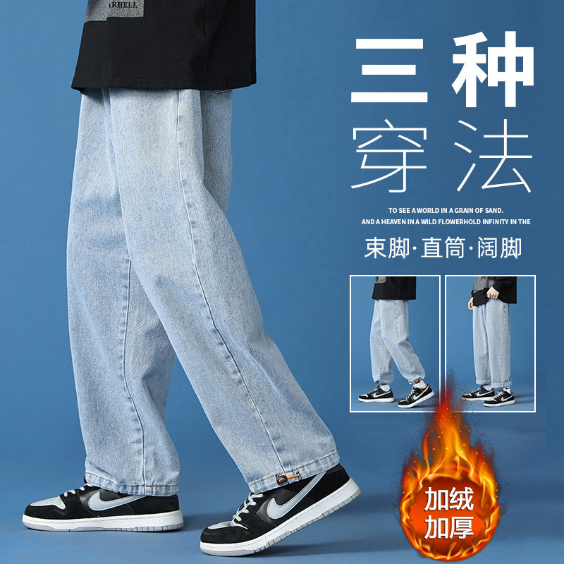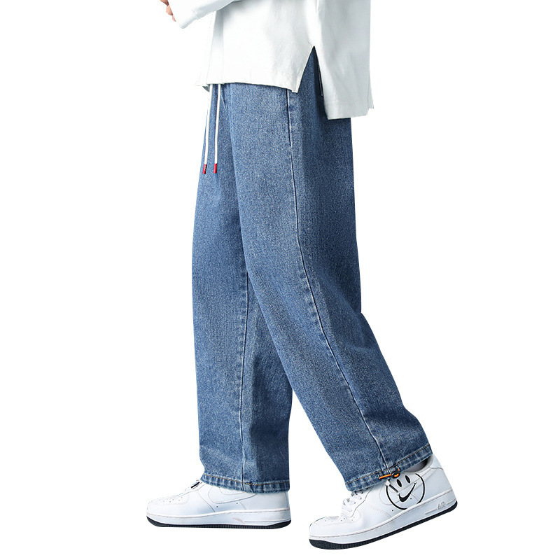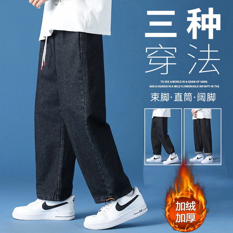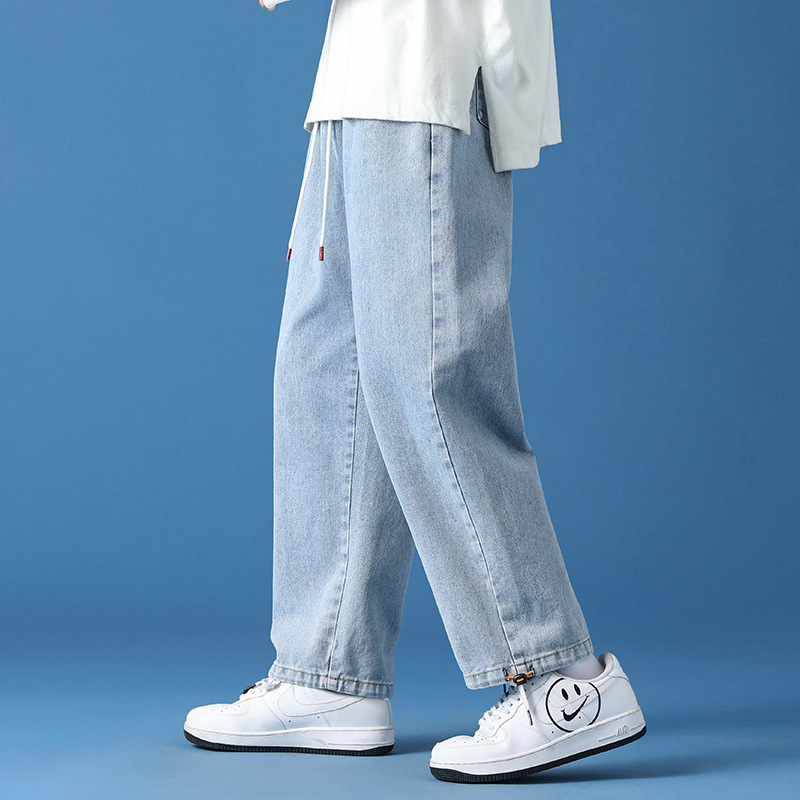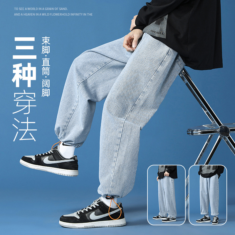 九分男生潮牌港风牛仔裤男士高街ins休闲直筒宽松阔腿长裤