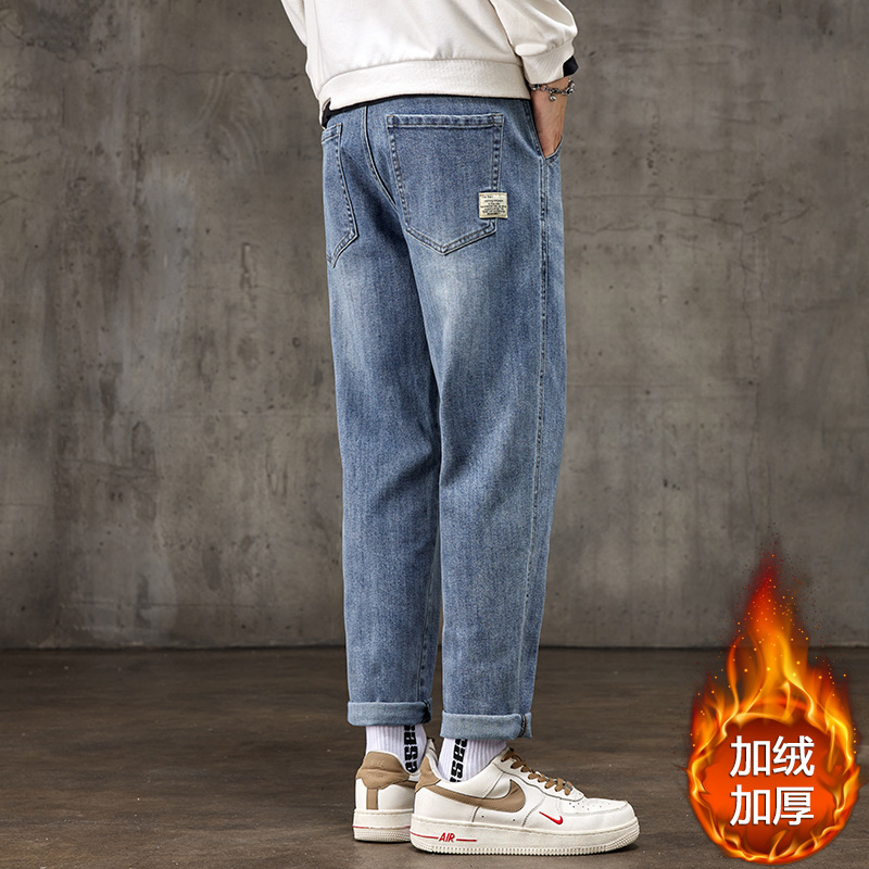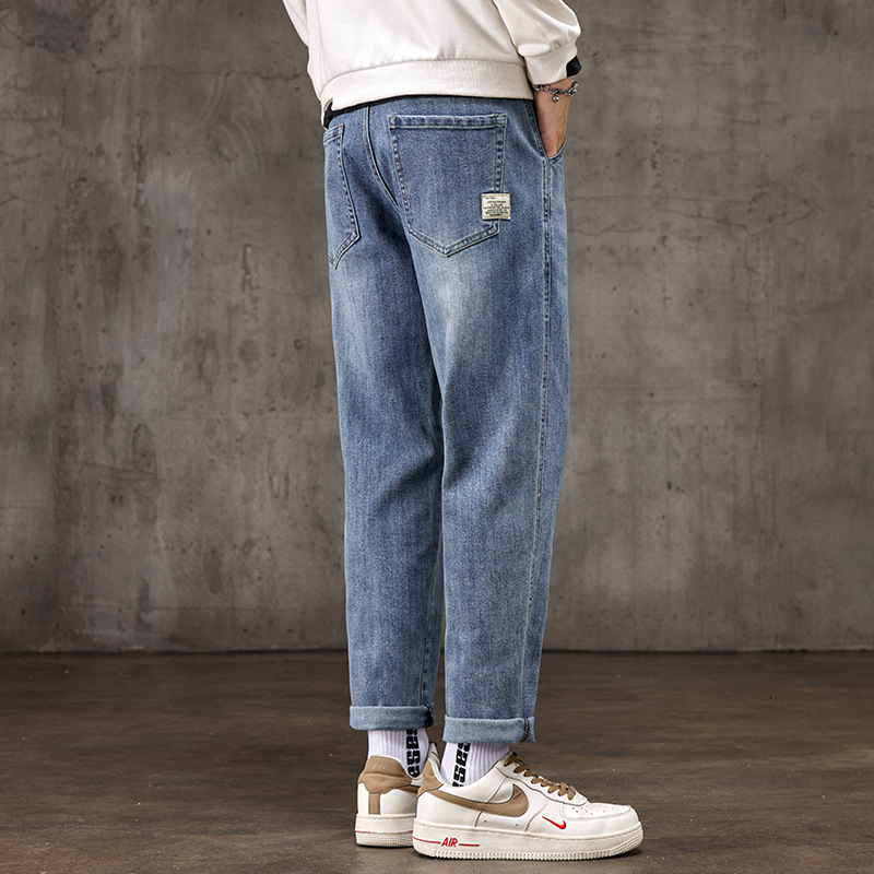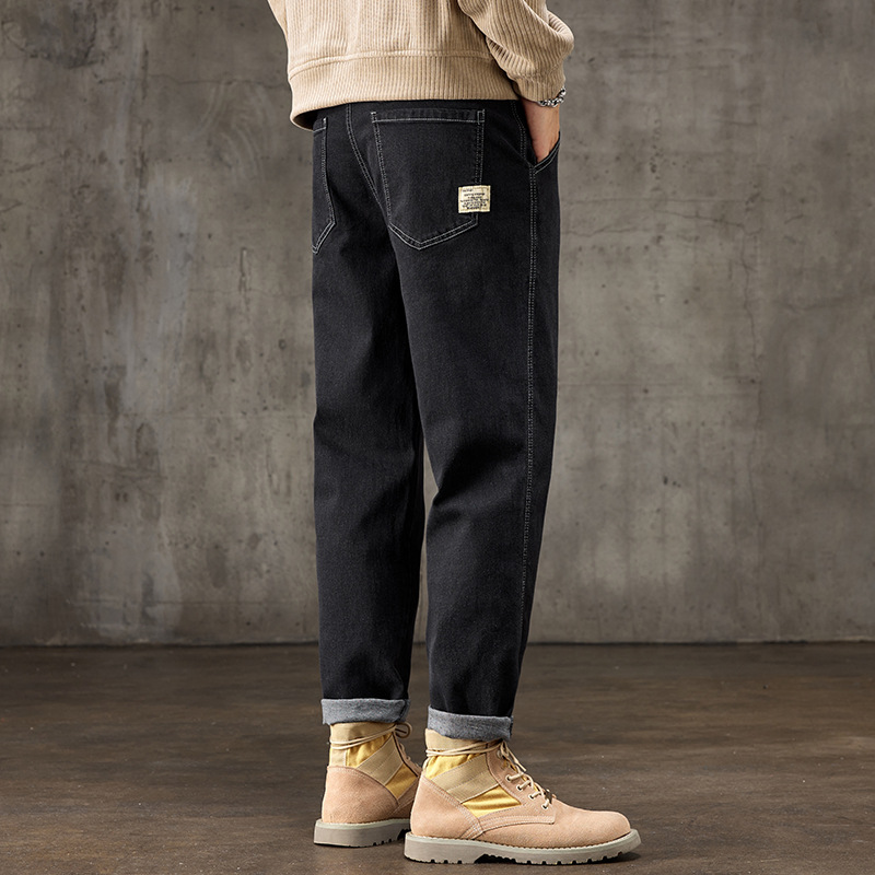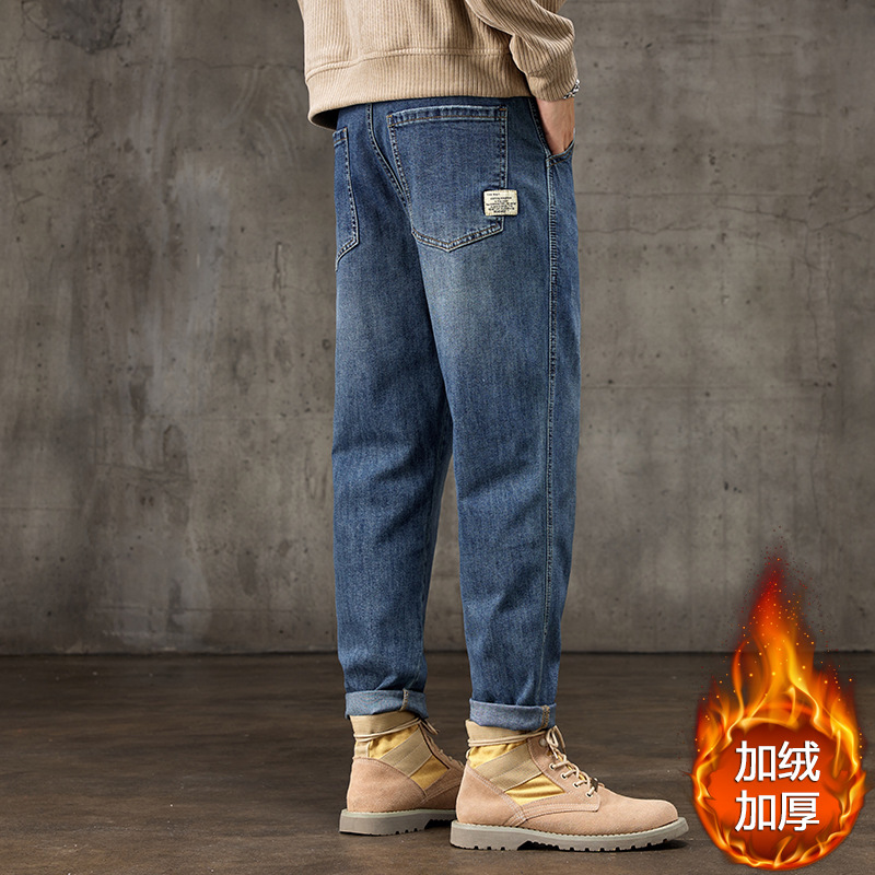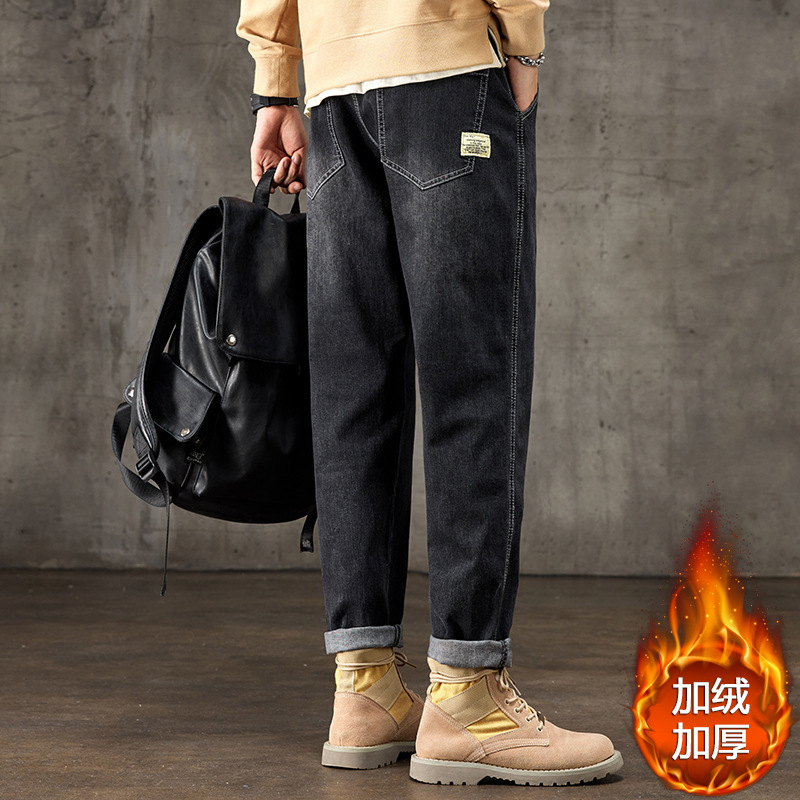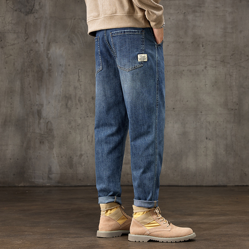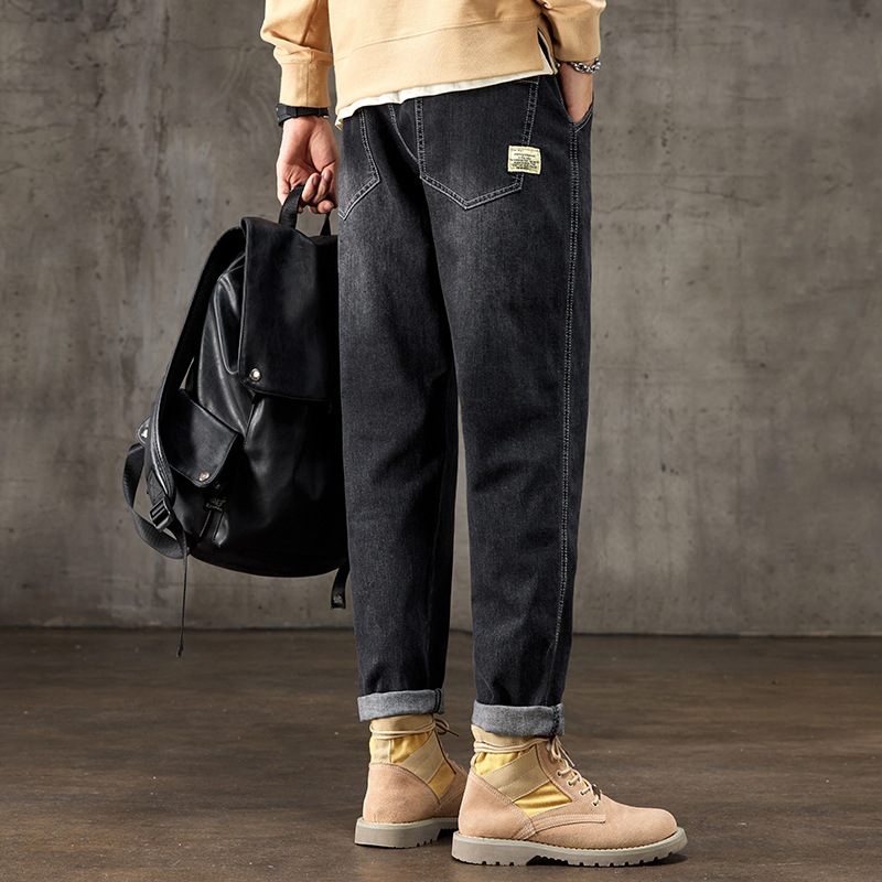 秋冬新款宽松哈伦微锥小直筒男士复古美式潮牌百搭弹力牛仔裤男