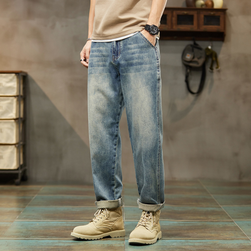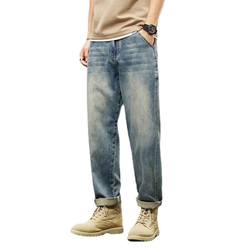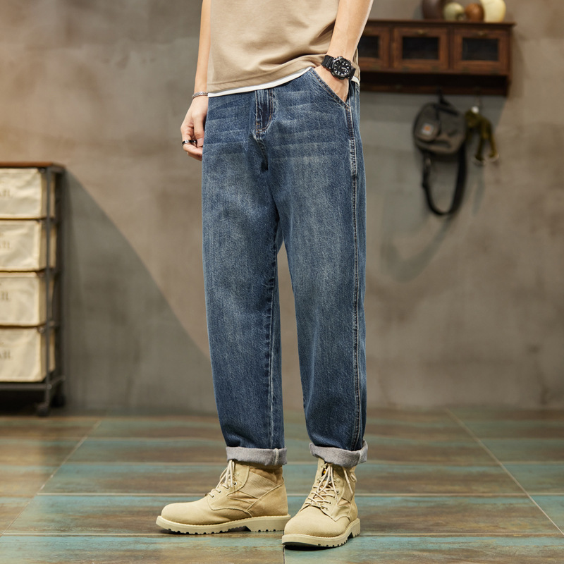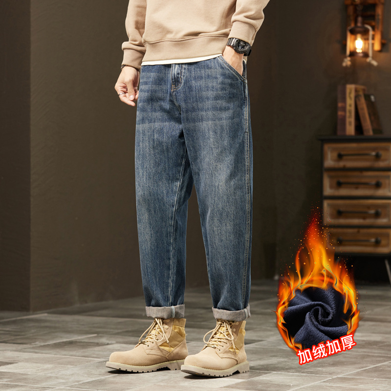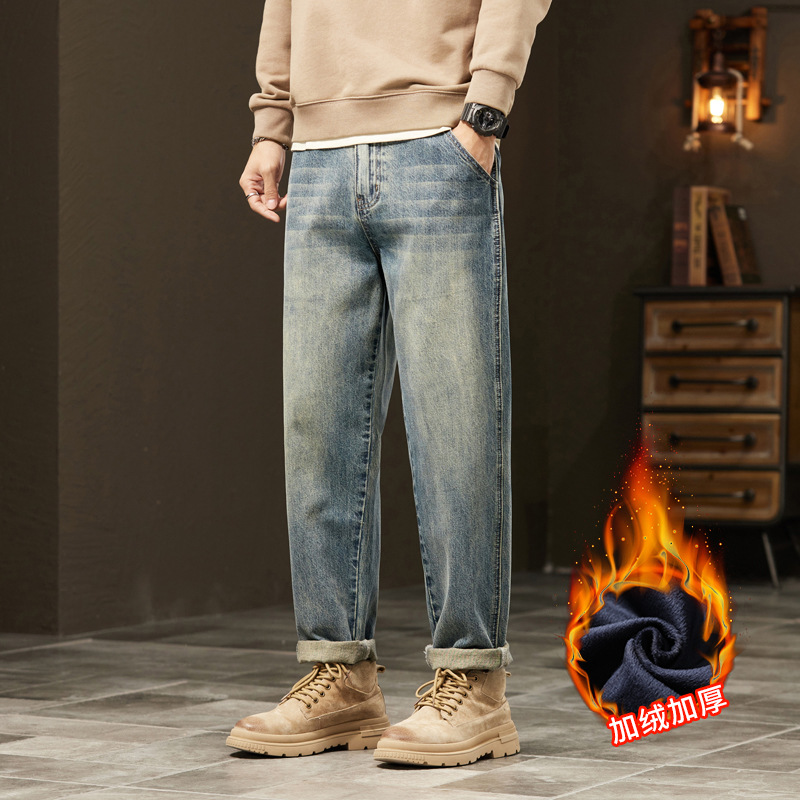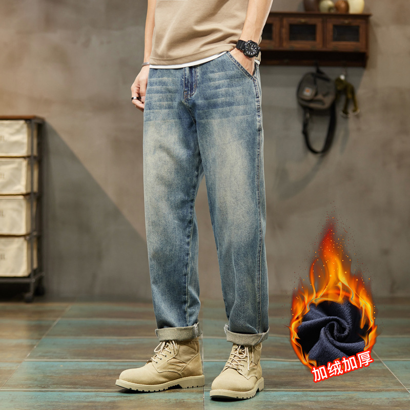 牛仔裤男秋冬季直筒宽松休闲长裤韩版潮流加绒加大裤子男潮牌