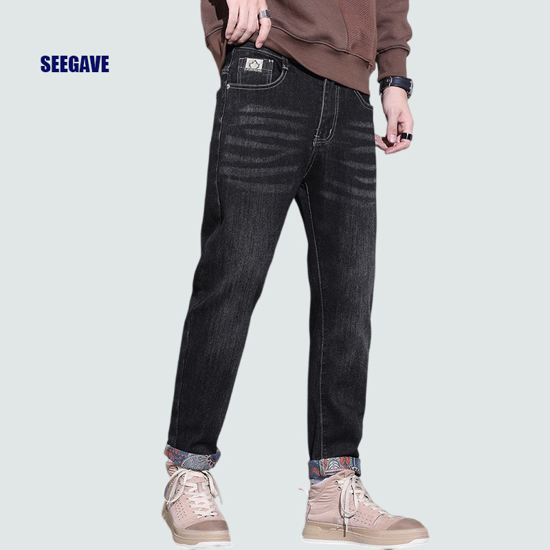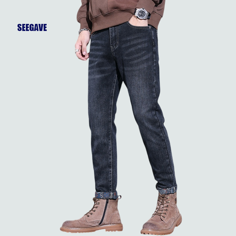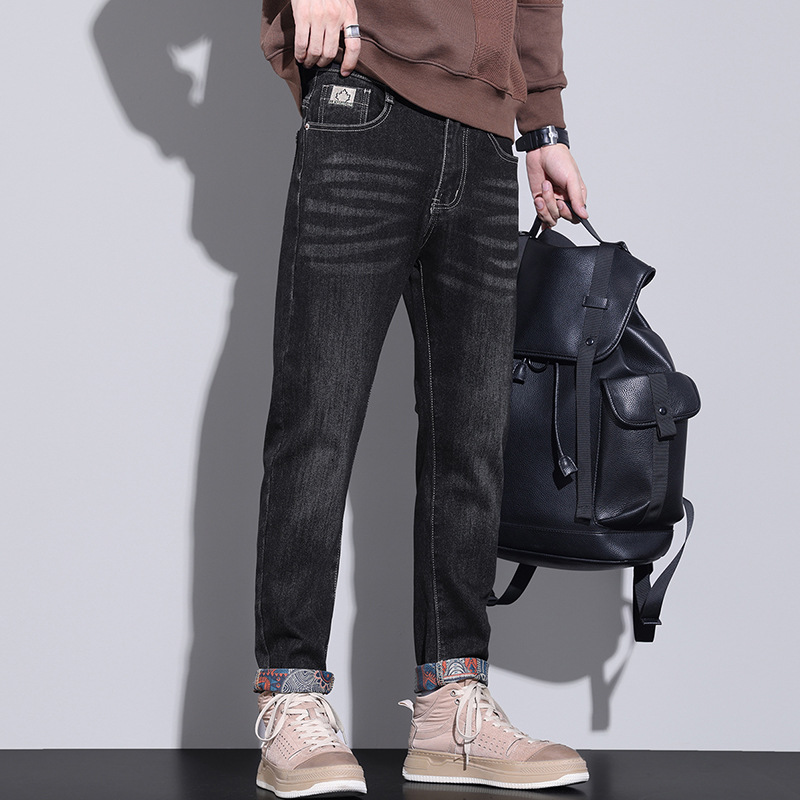 秋季牛仔裤男士抓绒弹力修身小脚休闲新款秋冬季男款加绒裤子