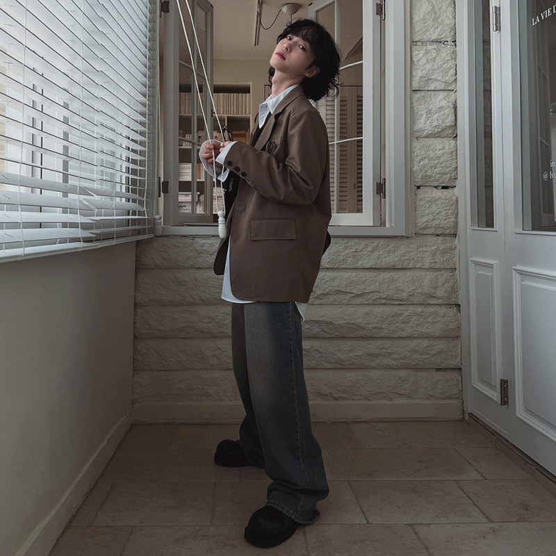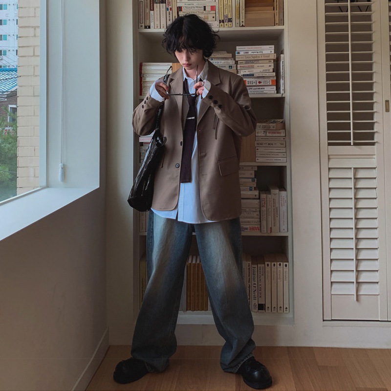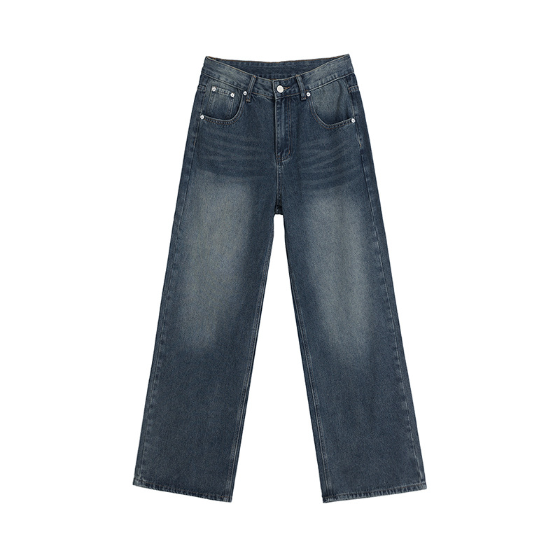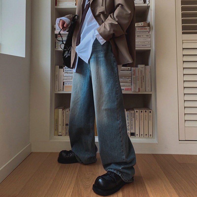 MYQ复古水洗牛仔裤男秋季宽松cleanfit阔腿长裤韩版潮流直筒裤