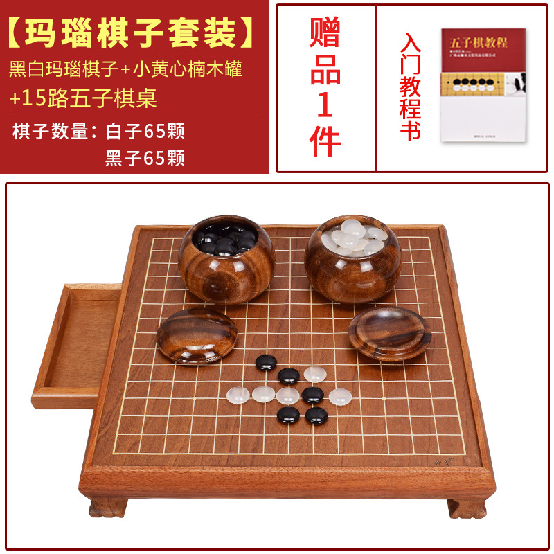 - ❤【15路五子棋桌】+红白玛瑙双面凸+小黄心楠木罐❤