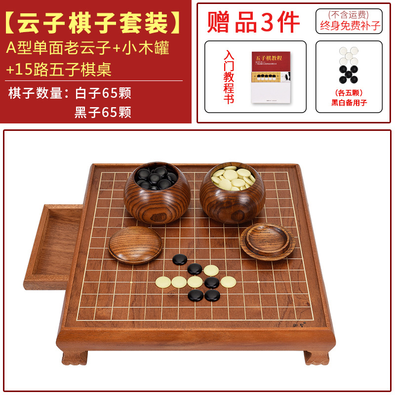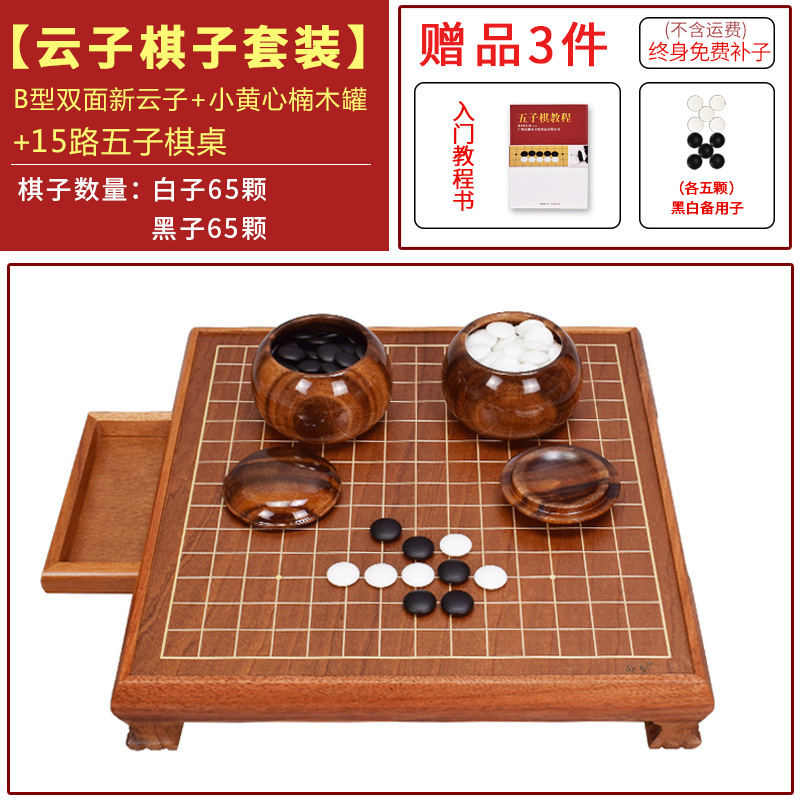 - ❤【15路五子棋桌】+A型单面老云子+小黄心楠木罐❤