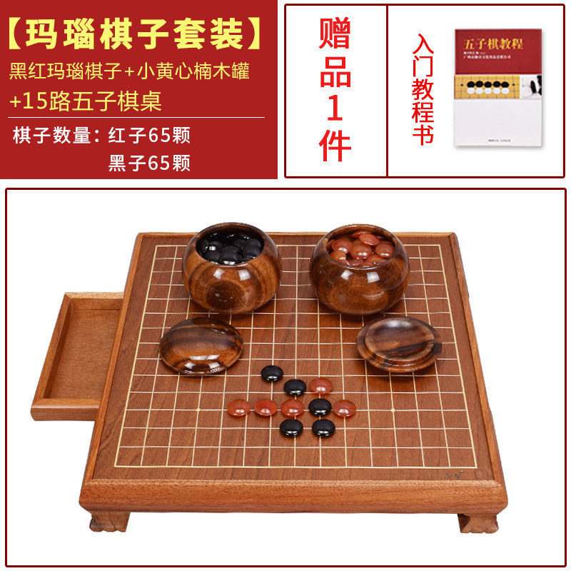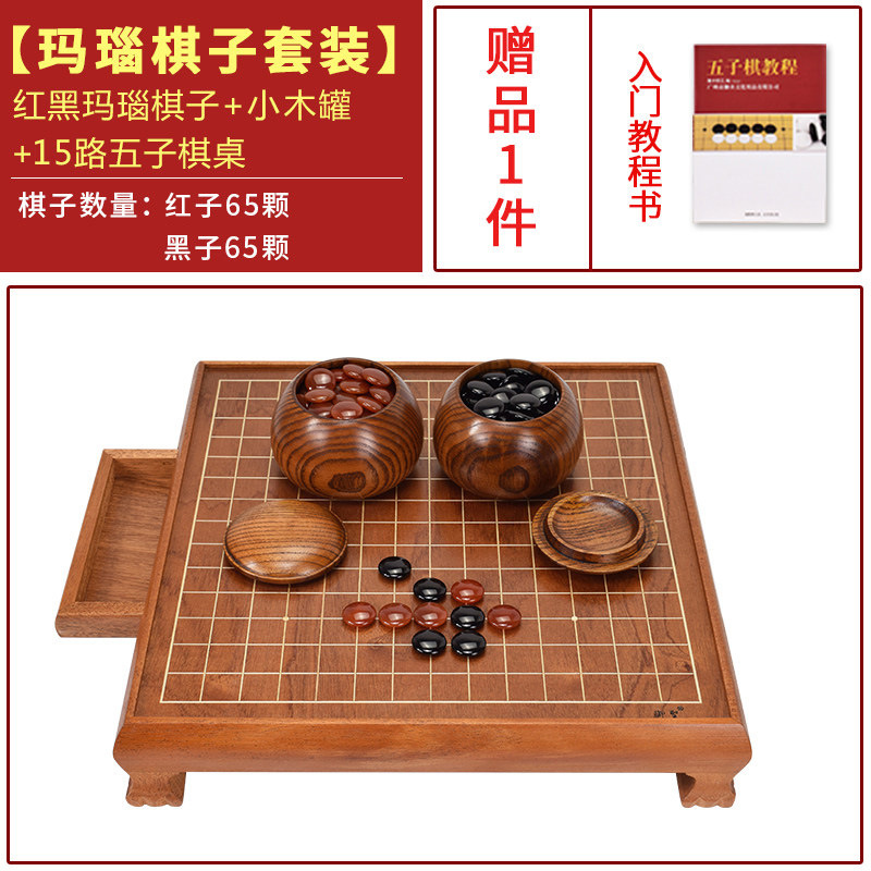 - ❤【15路五子棋桌】+红黑玛瑙双面凸+小木罐❤