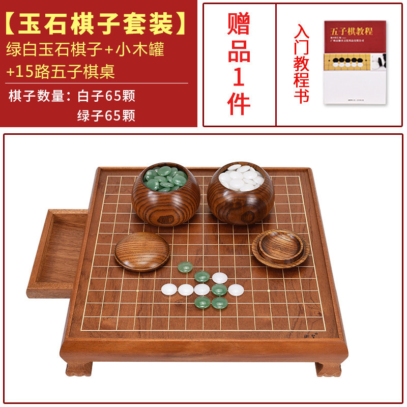 - ❤【15路五子棋桌】+绿白玉石双面凸+小木罐❤