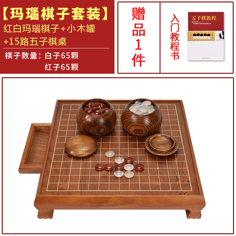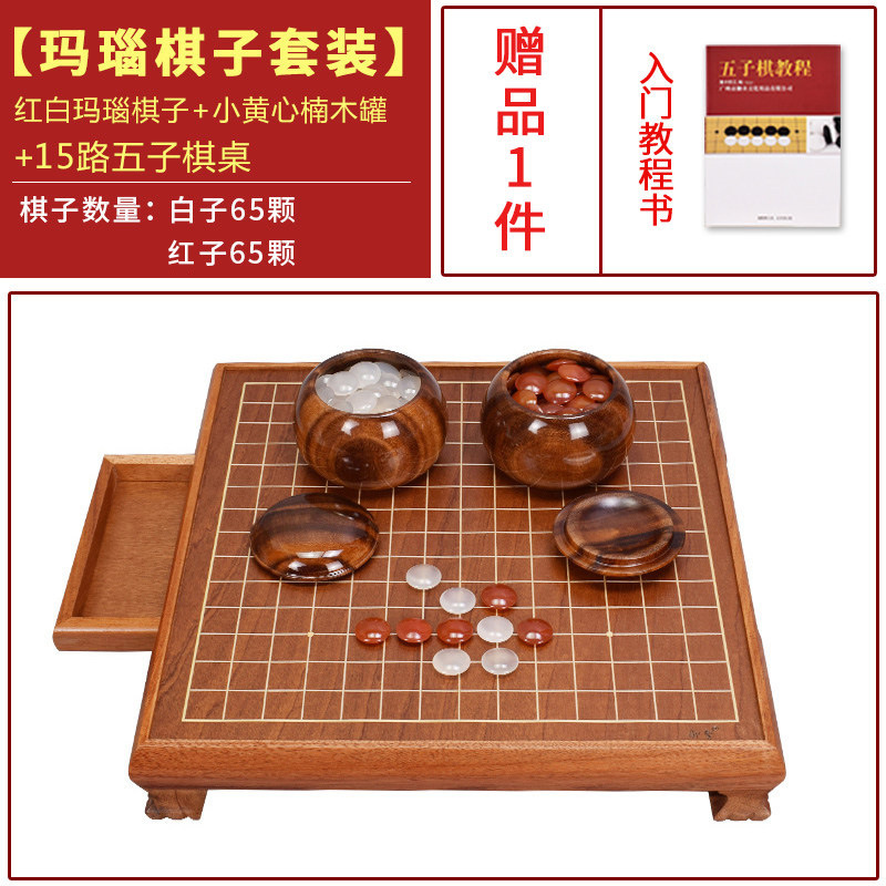 - ❤【15路五子棋桌】+红白玛瑙双面凸+小木罐❤