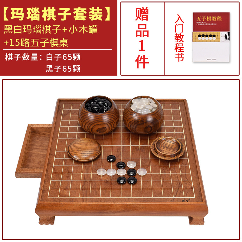 五子棋盘套装玉石玛瑙黑白五子棋子大人木质棋桌儿童五指棋盘