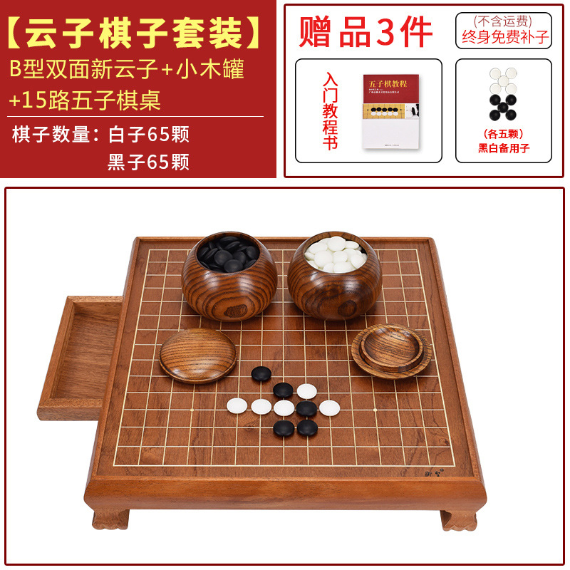 - ❤【15路五子棋桌】+A型单面老云子+小木罐❤