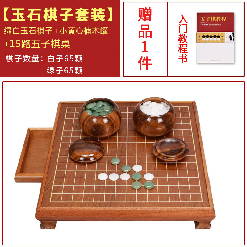 - ❤【15路五子棋桌】+绿白玉石双面凸+小黄心楠木罐❤