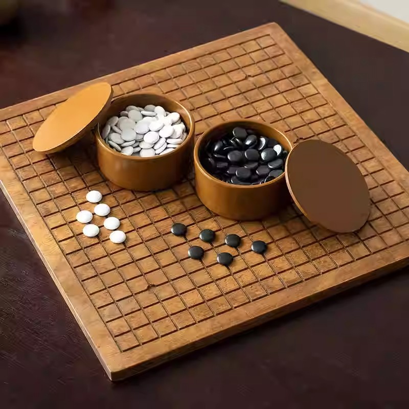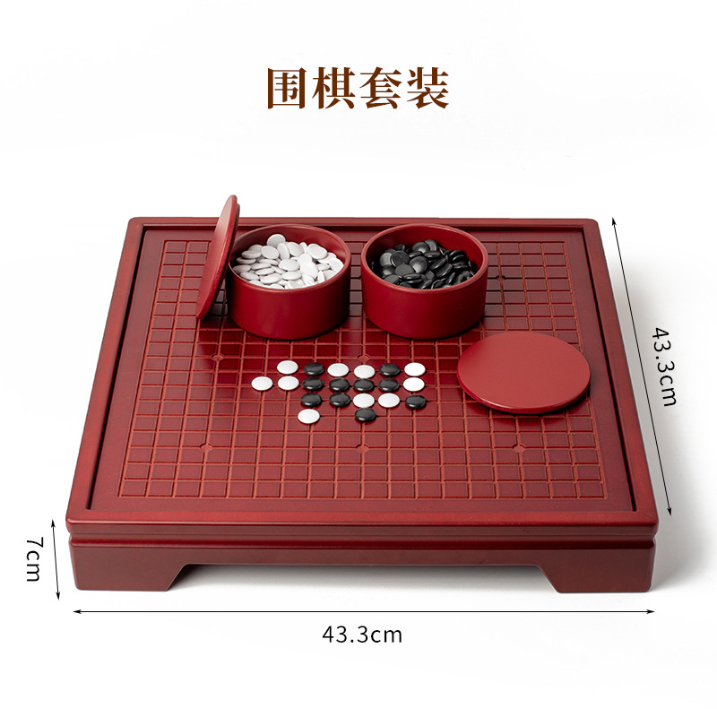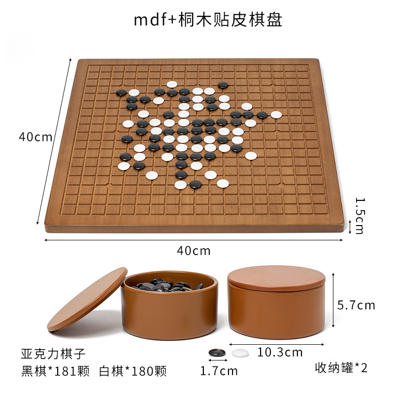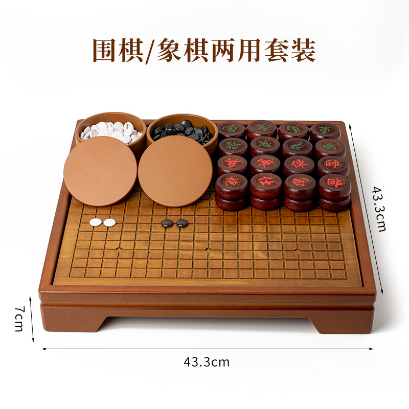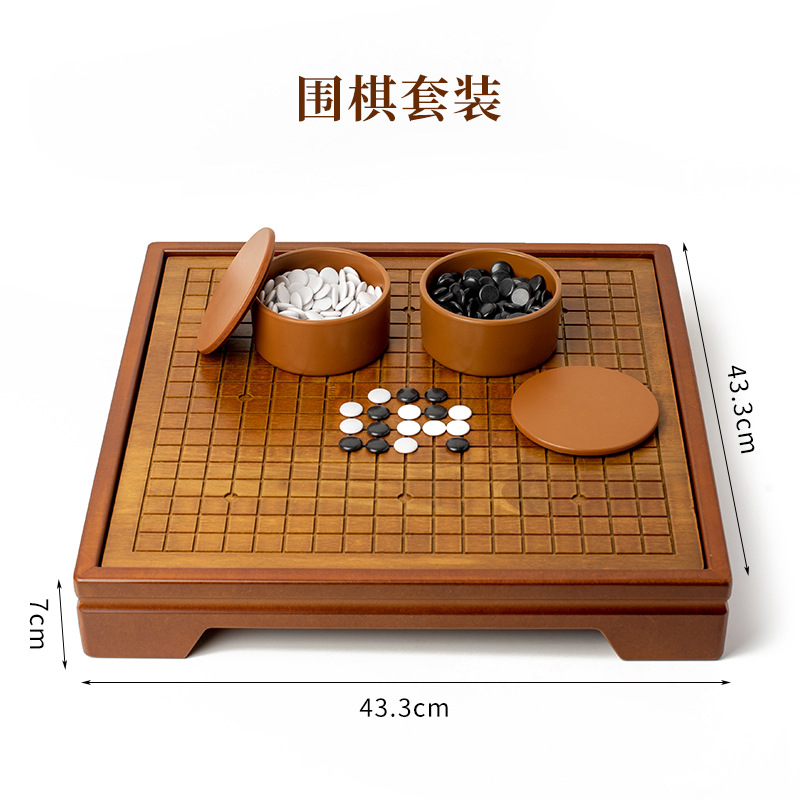 - 桌面款小麦色MDF围棋+象棋+收纳罐+棋子