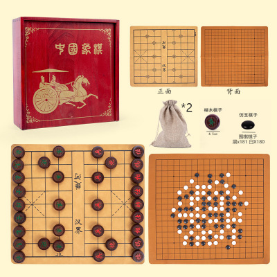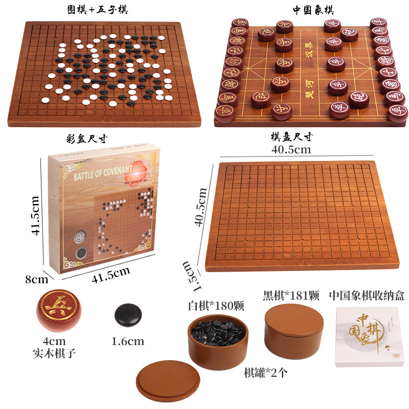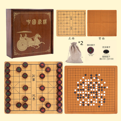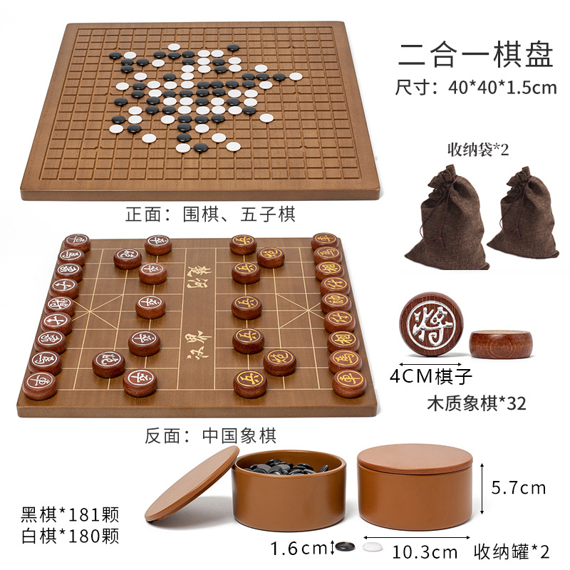 二合一围棋象棋盘套装大人成人儿童初学者木制黑白五子棋子罐装
