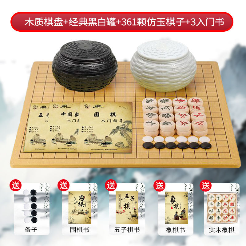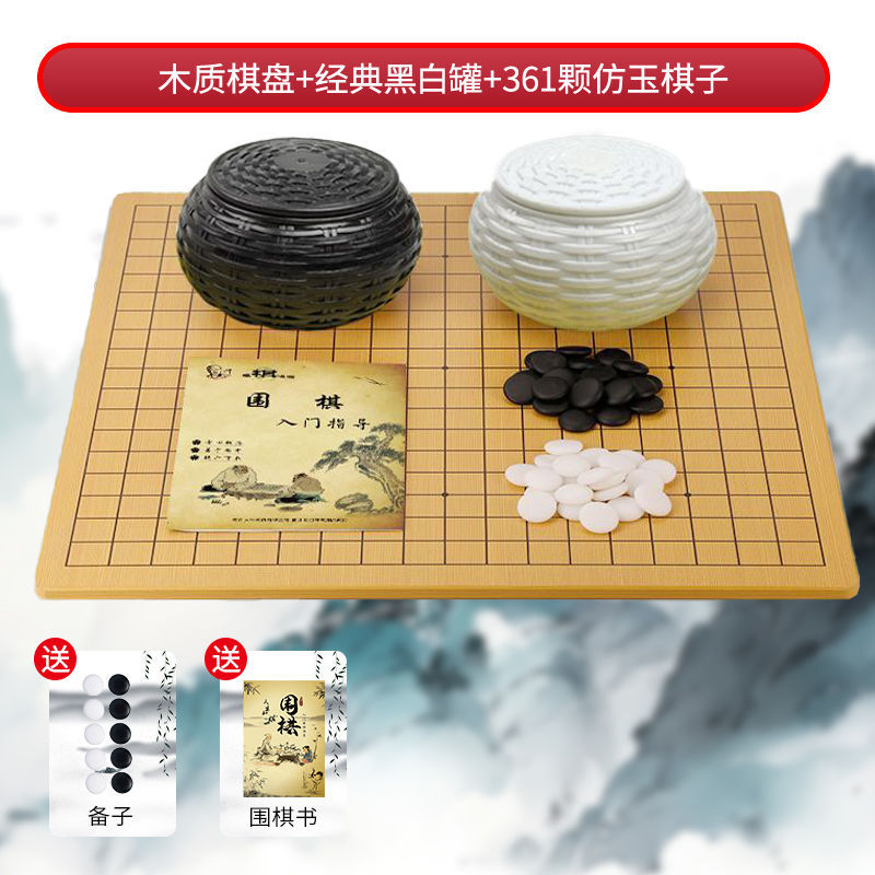 经典黑白罐-【木质棋盘】+实木象棋-【老师推荐】361仿玉子+入门书套餐