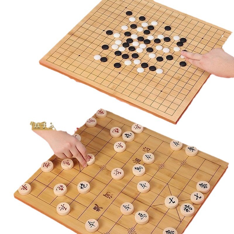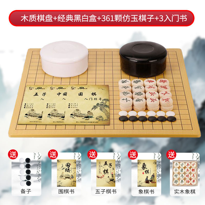 经典黑白盒-【木质棋盘】+实木象棋-【老师推荐】361仿玉子+入门书套餐